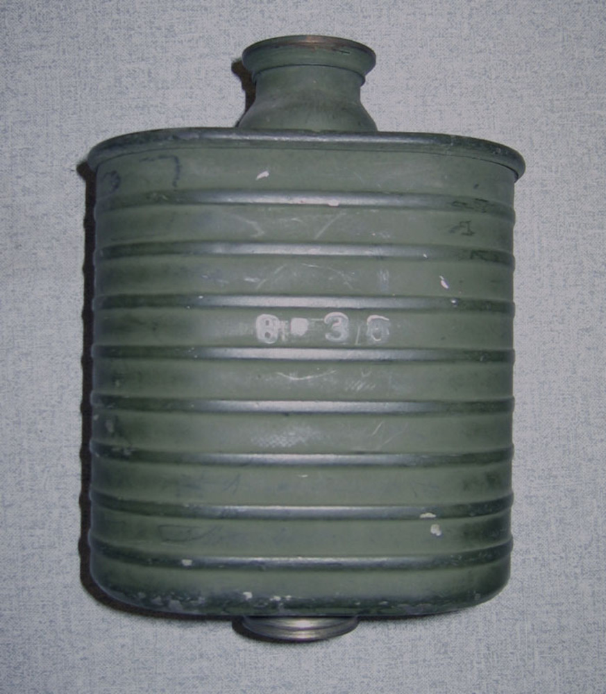 Blik (filter?) bij gasmasker Nederlands ca. 1938-1945