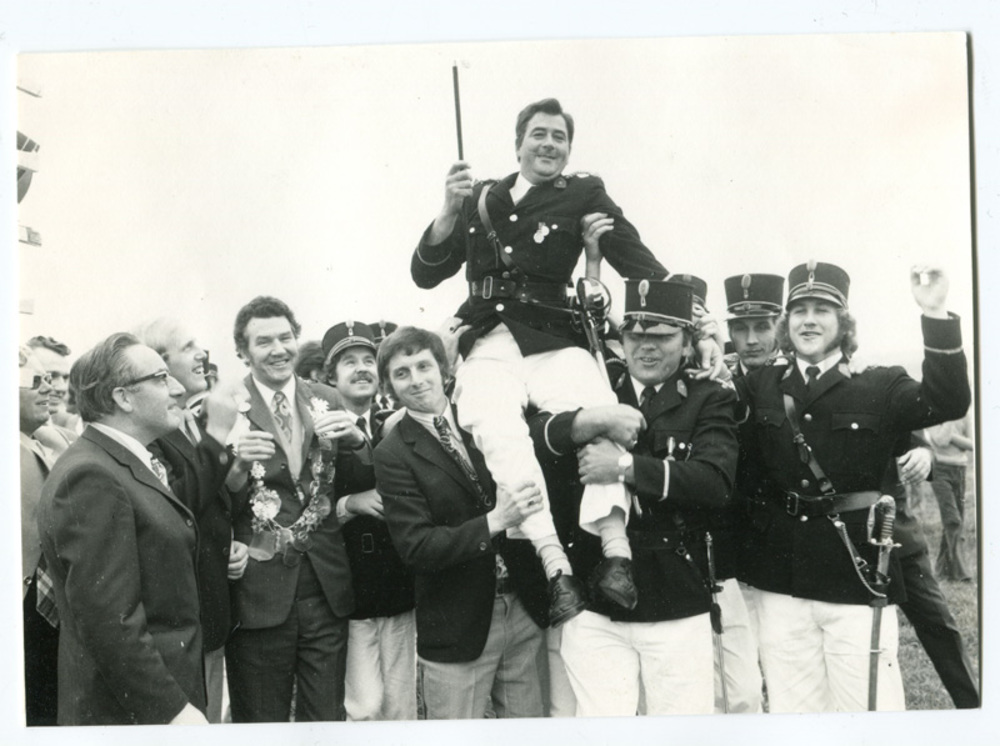 Zwart-wit foto van de nieuwe schutterskoning van Cla...