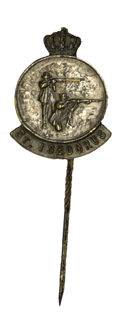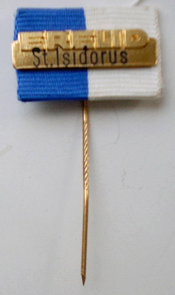 Speld met de tekst 'erelid Sint Isidorus' van metaal
