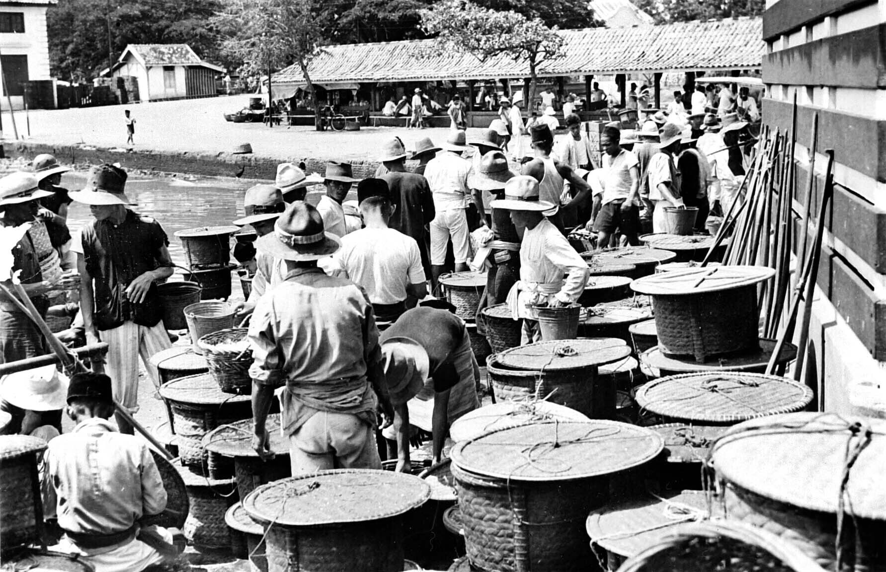 Verkopers wachten op de binnenvarende vissersprauwen...