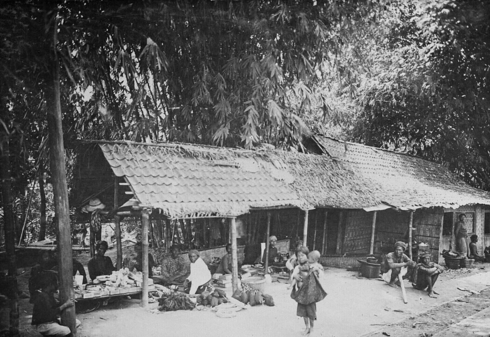 Frontaanzicht van de jaarmarkt 'Pasar Gambir' 1934 t...