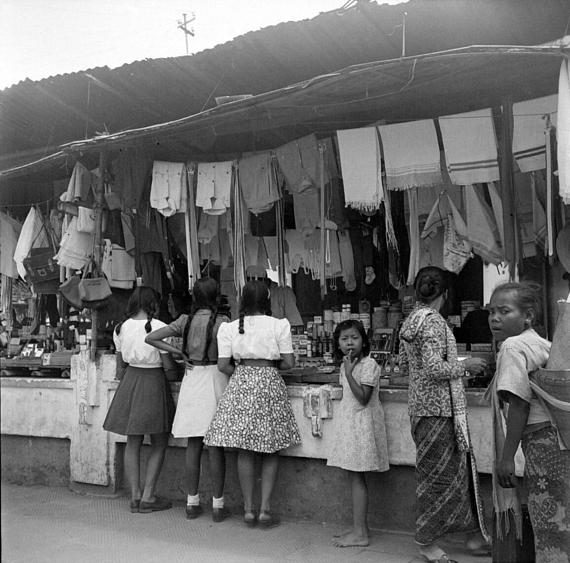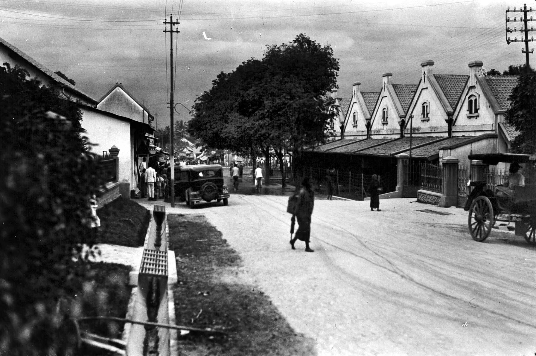 Winkeltjes met textiel e.d. te Madiun, Oost-Java