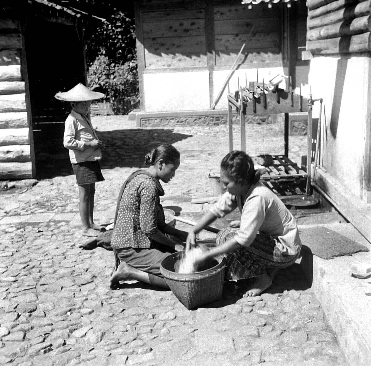 Verkoop van rijst op het achtererf te Saradan, Madiu...