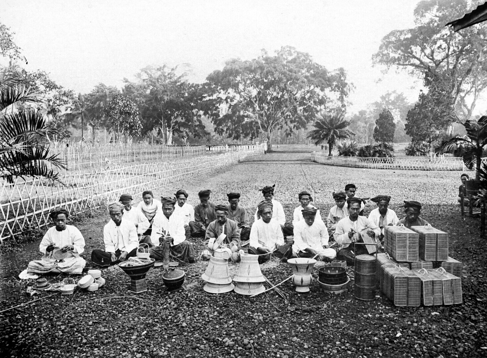 Mandenvlechters tijdens de vervaardiging van rotan e...