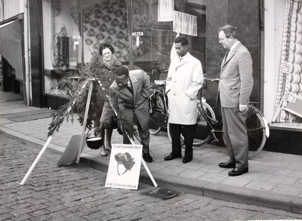 Tabaksblad van brons op houten voetje ter gelegenhei...
