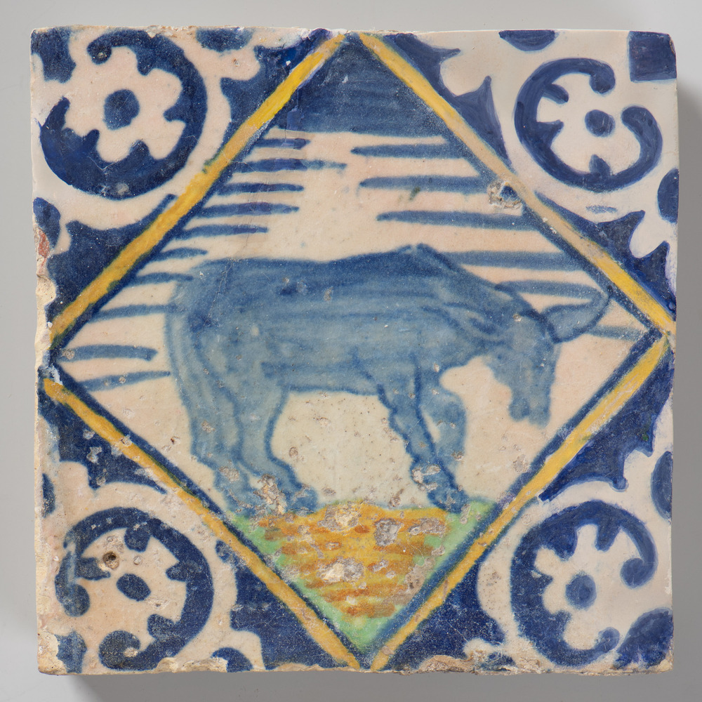 tegel van keramiek met tinglazuur, voorstellende: ez...