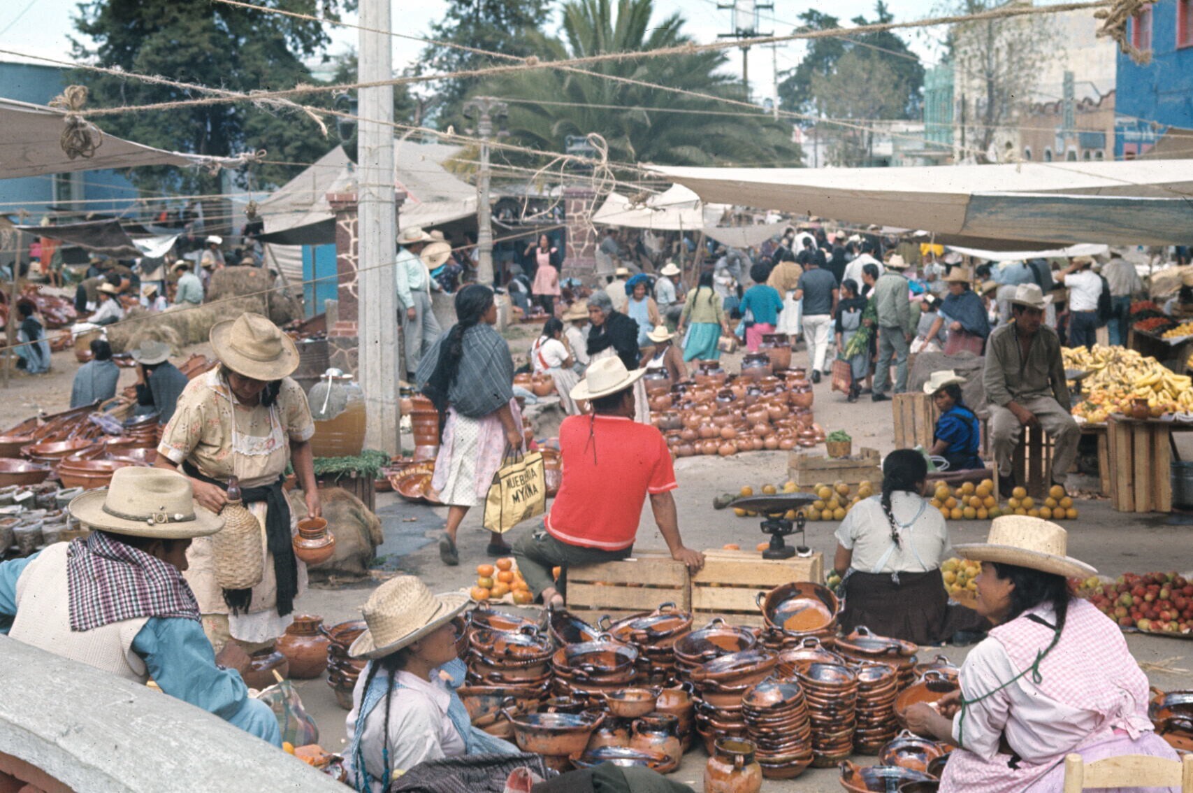 overzichtsfoto aardewerk op markt
