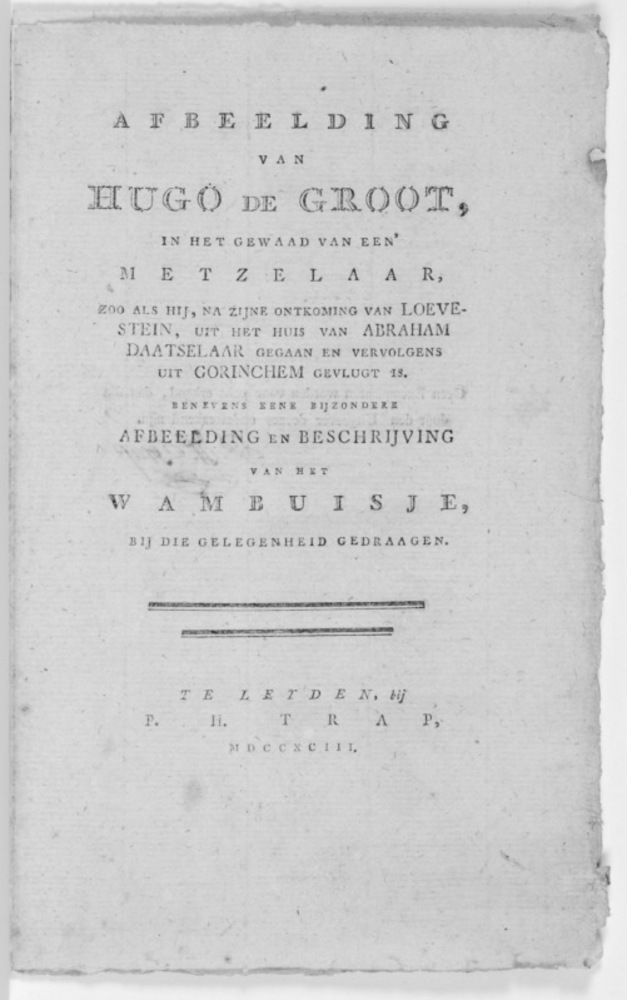 Standbeeld van Hugo de Groot, lithografie, 1886