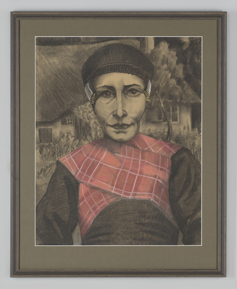 Houtskooltekening, voorstellende een Hierdense boeri...