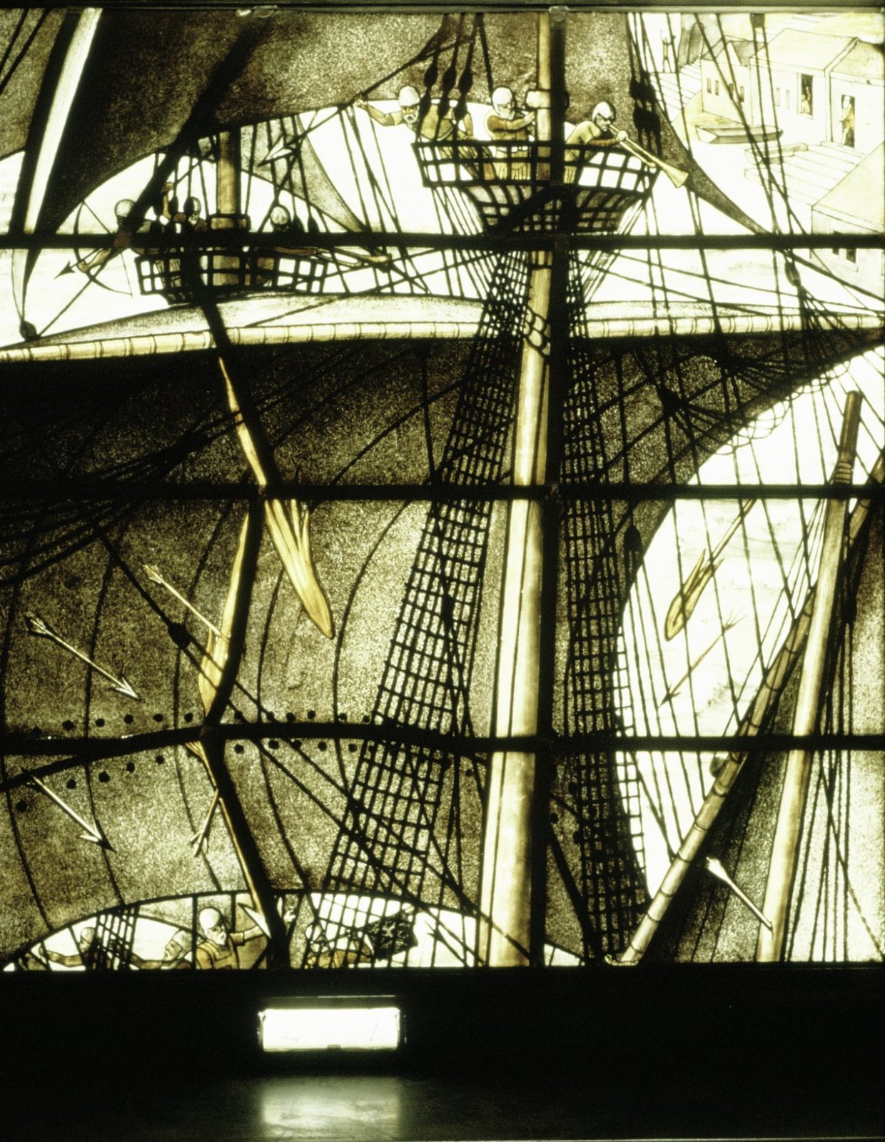 Interieur, gebrandschilderd glas nr. 1, detail E 11