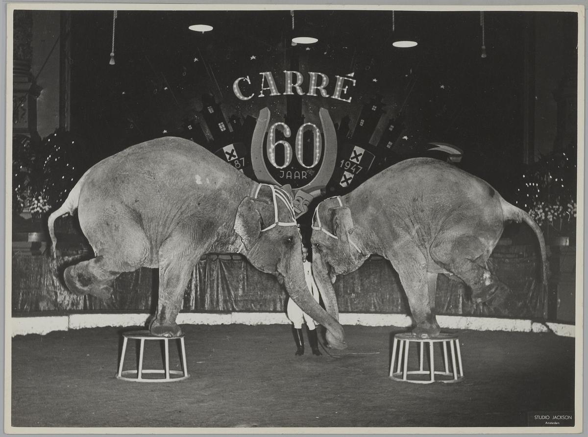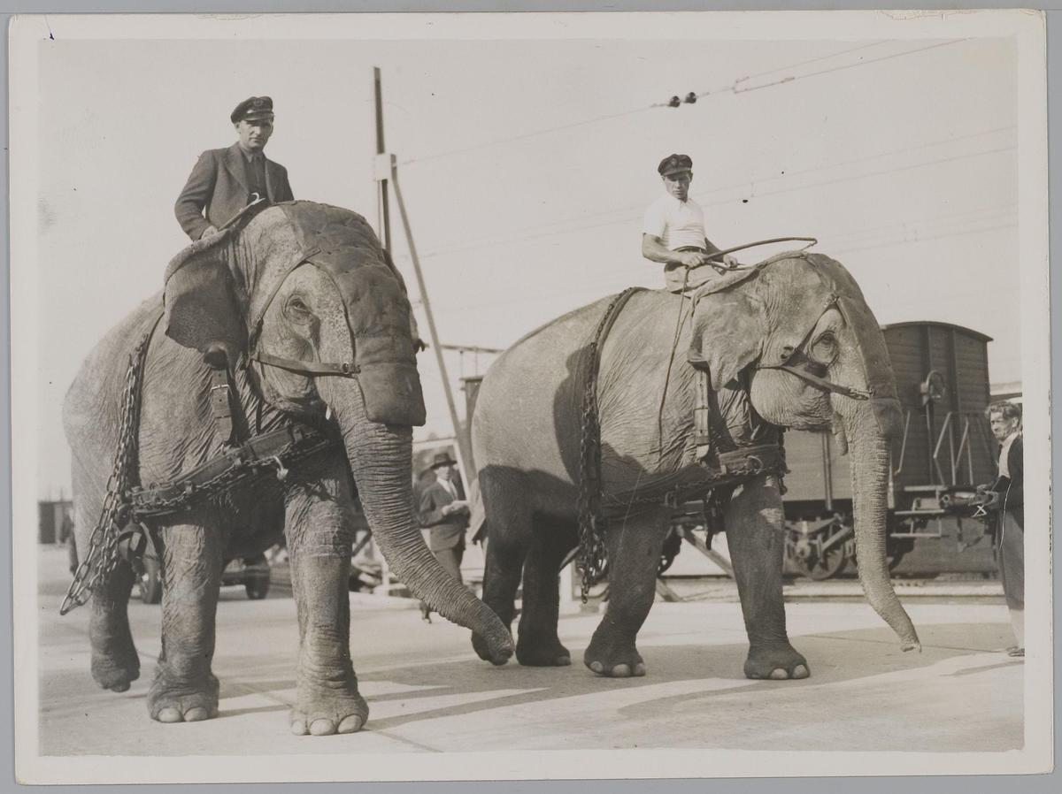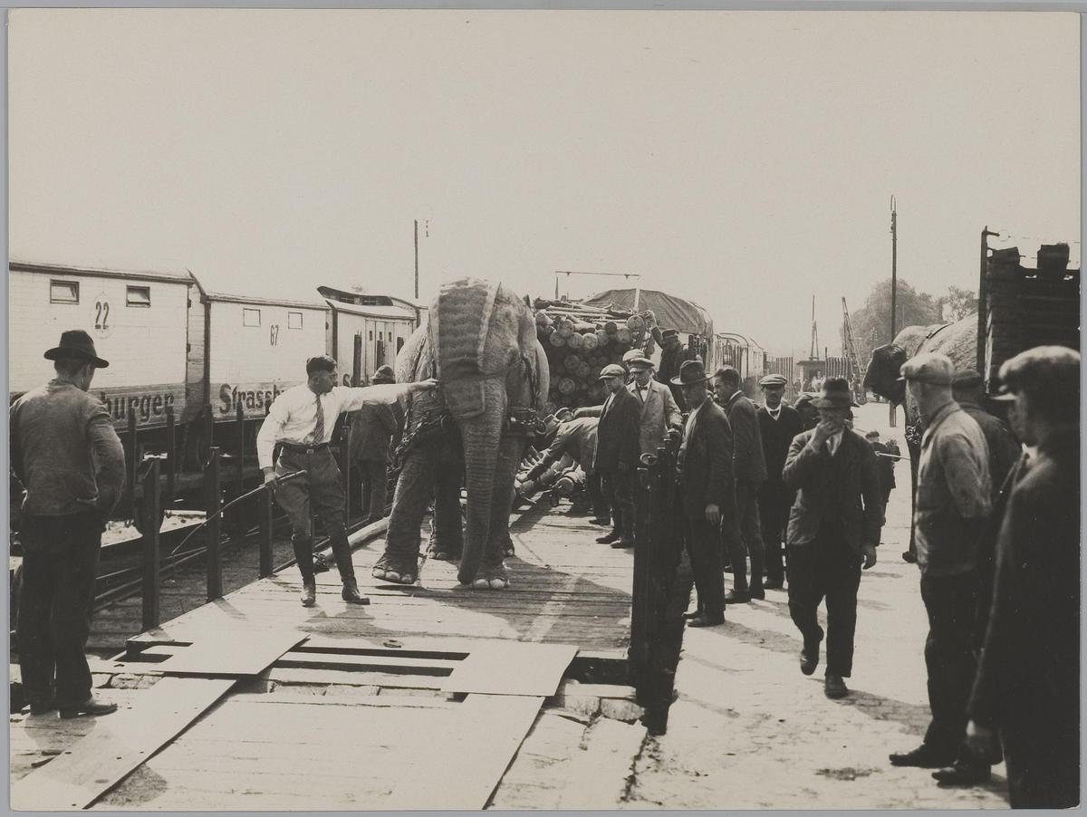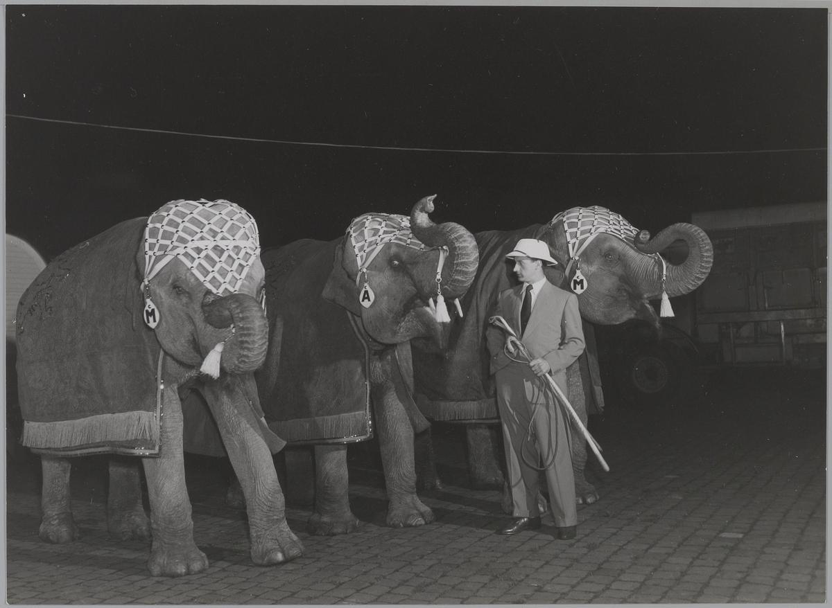 Circus Strassburger. Werkolifant voor roofdierenwage...