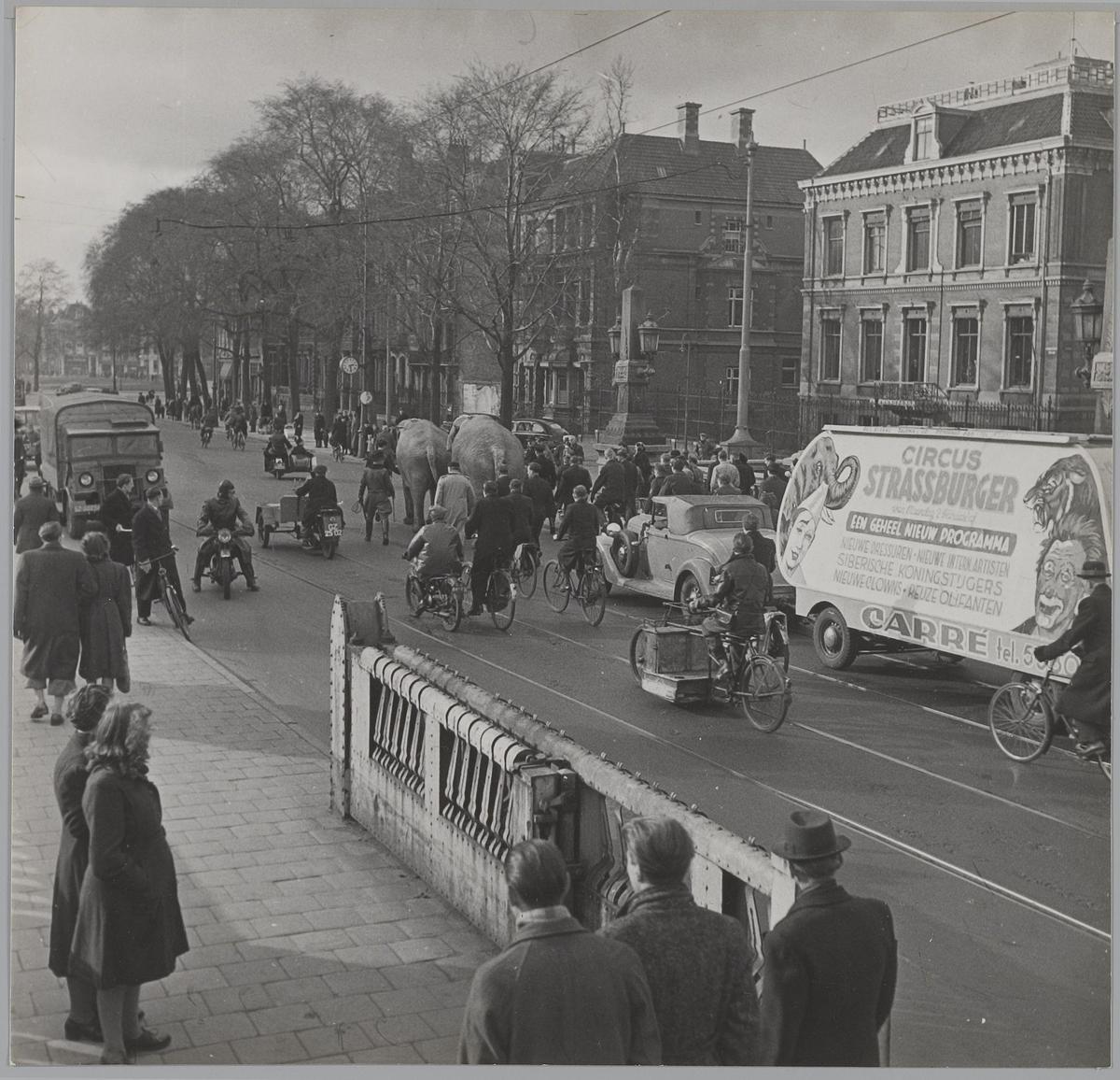 Circus Strassburger. Optocht door Den Haag. Voorhout