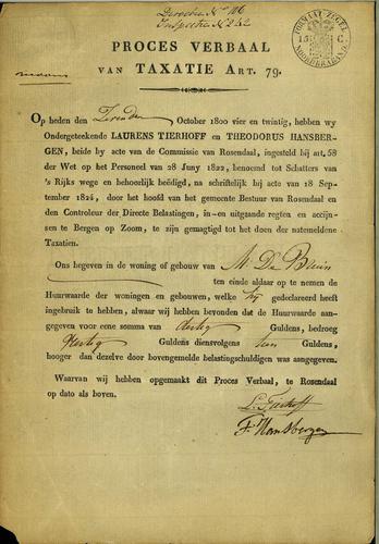 Proces-verbaal van taxatie huurwaarde, 1824