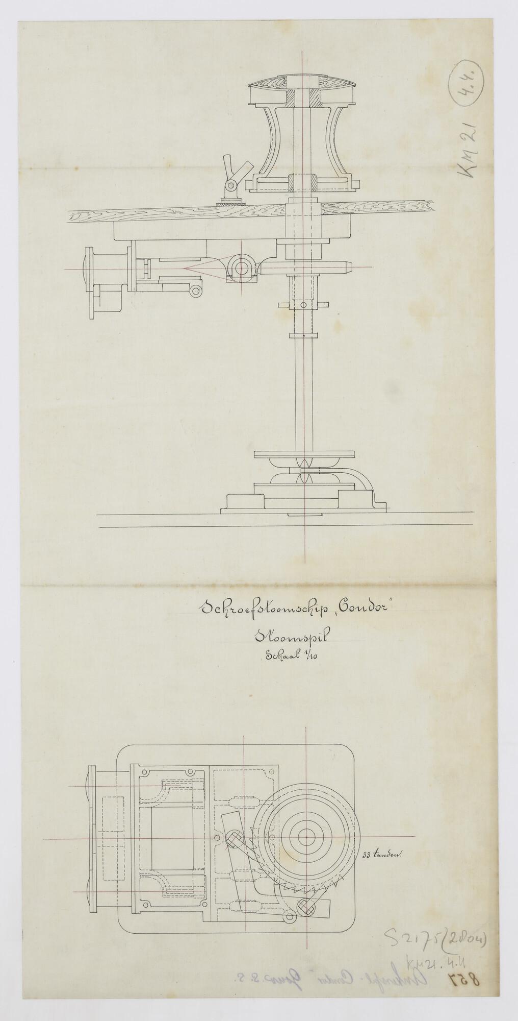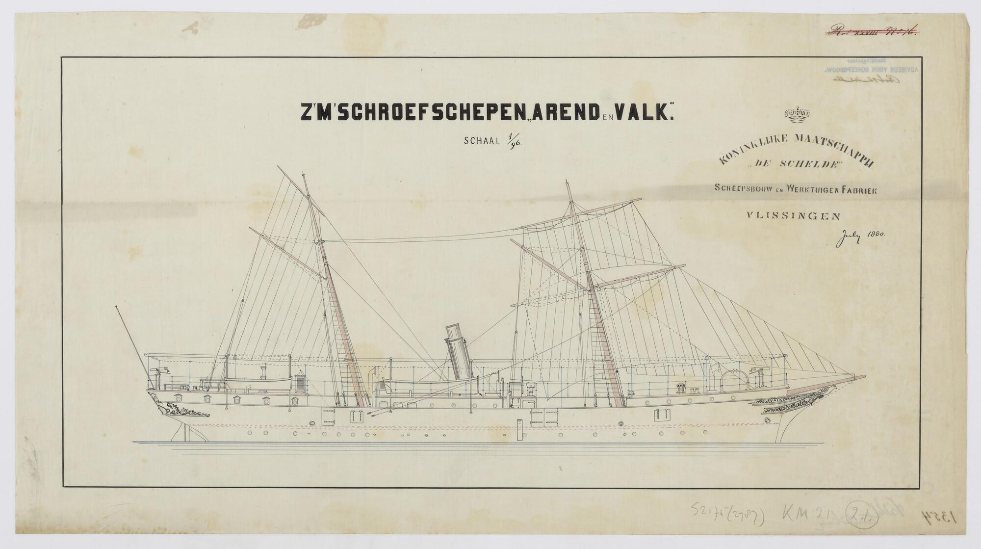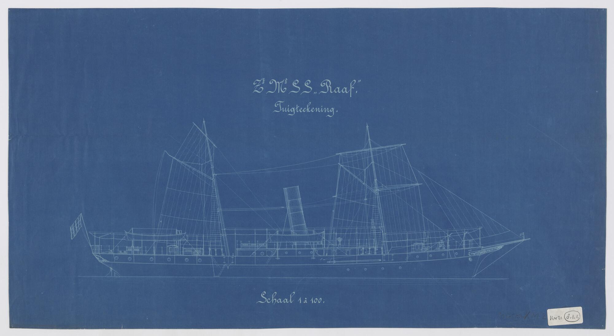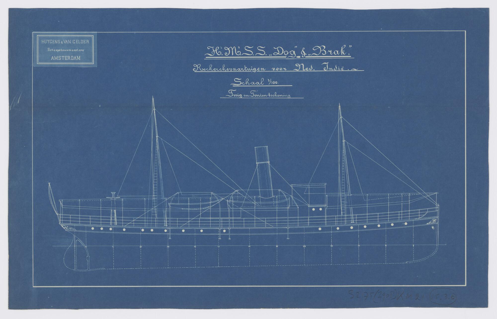 Zeilplan en tuigtekening van het schroefstoomschip v...