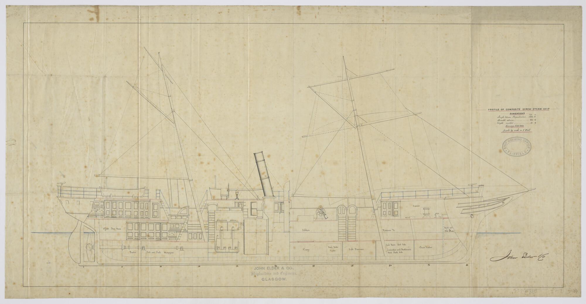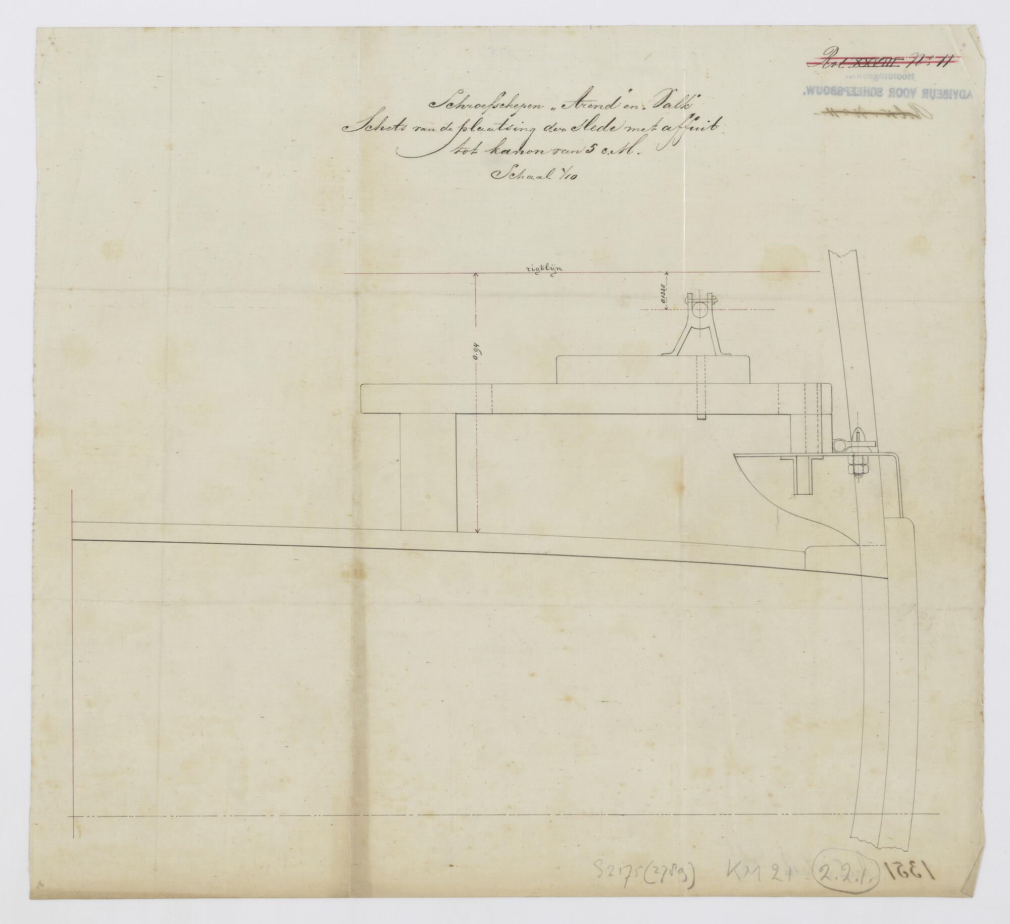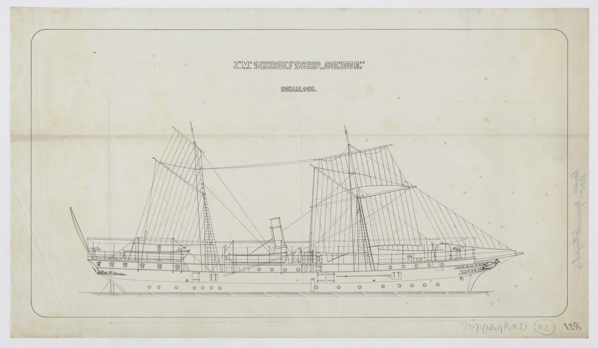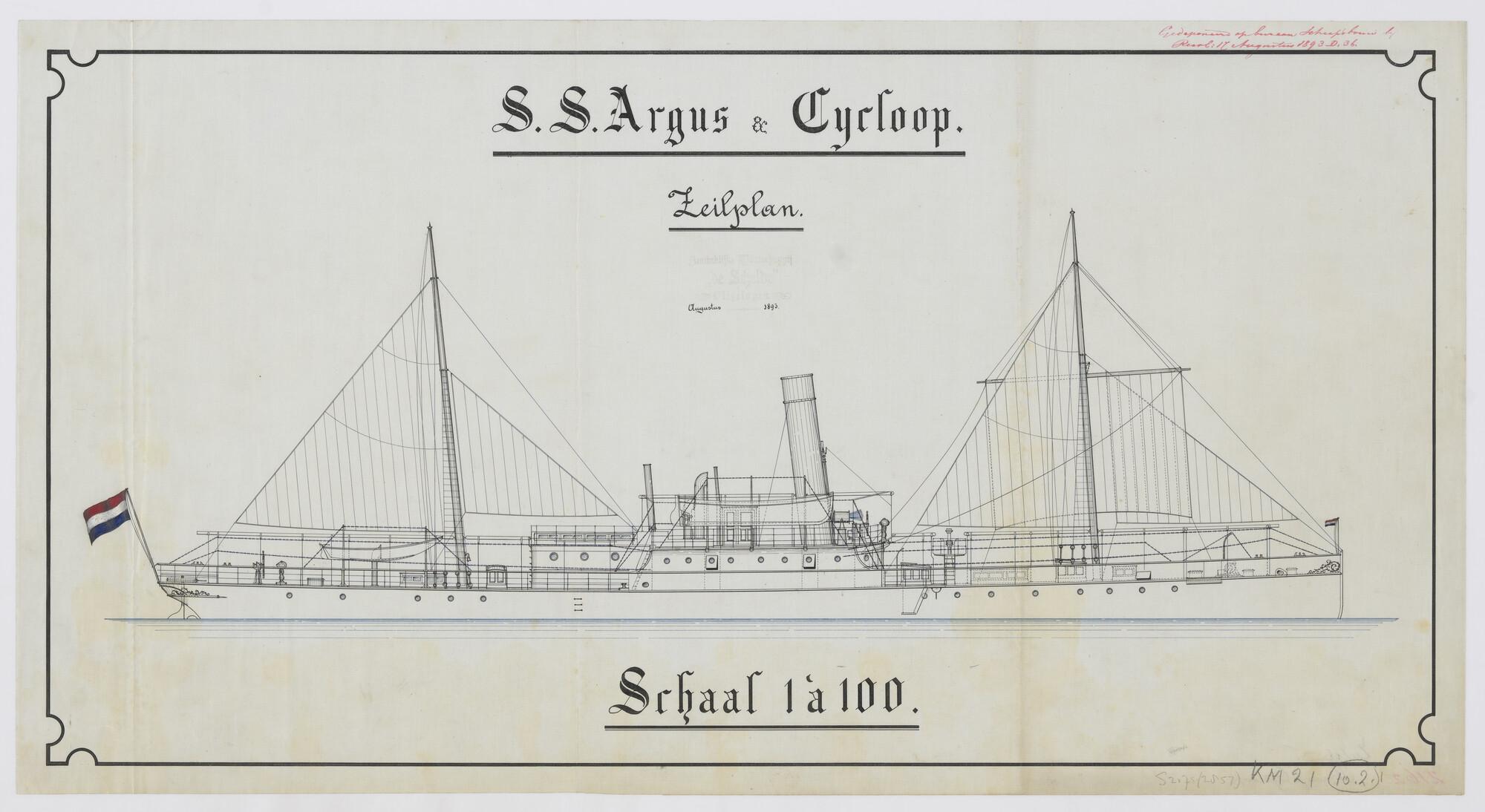 Zeilplan van het schroefstoomschip voor de Gouvernem...