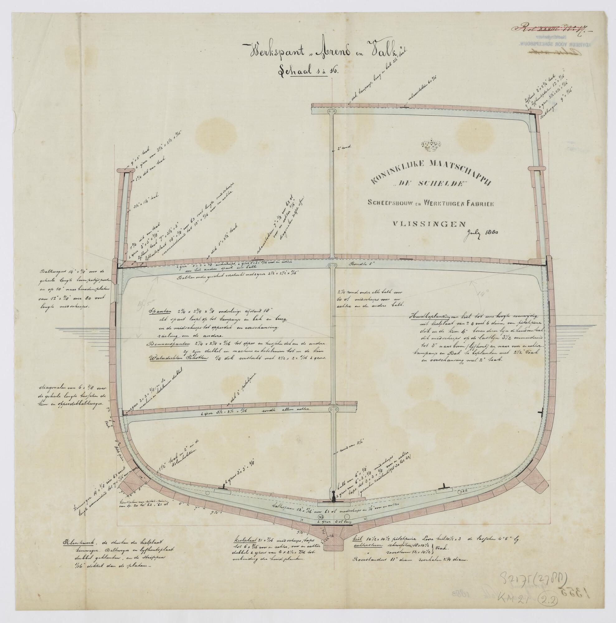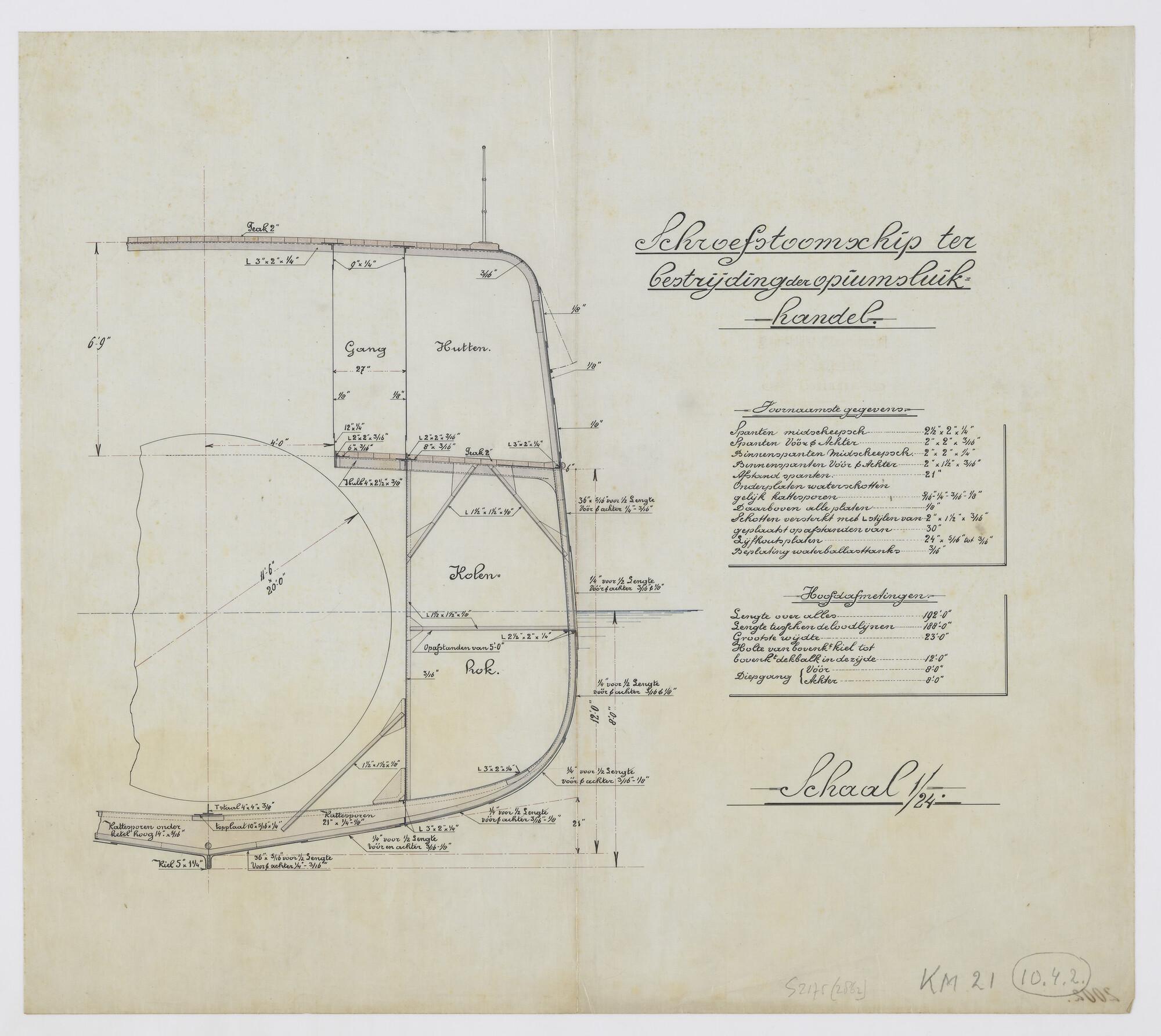 Grootspanttekening van het schroefstoomschip Zr.Ms. ...