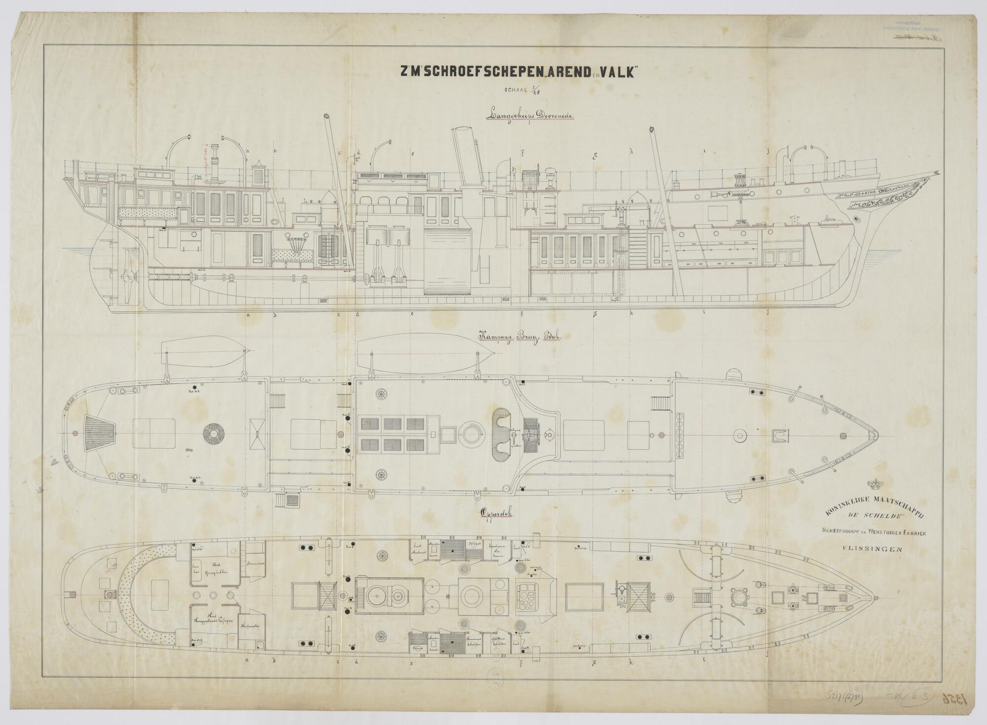 Grootspanttekening van de schroefstoomschepen Zr.Ms....