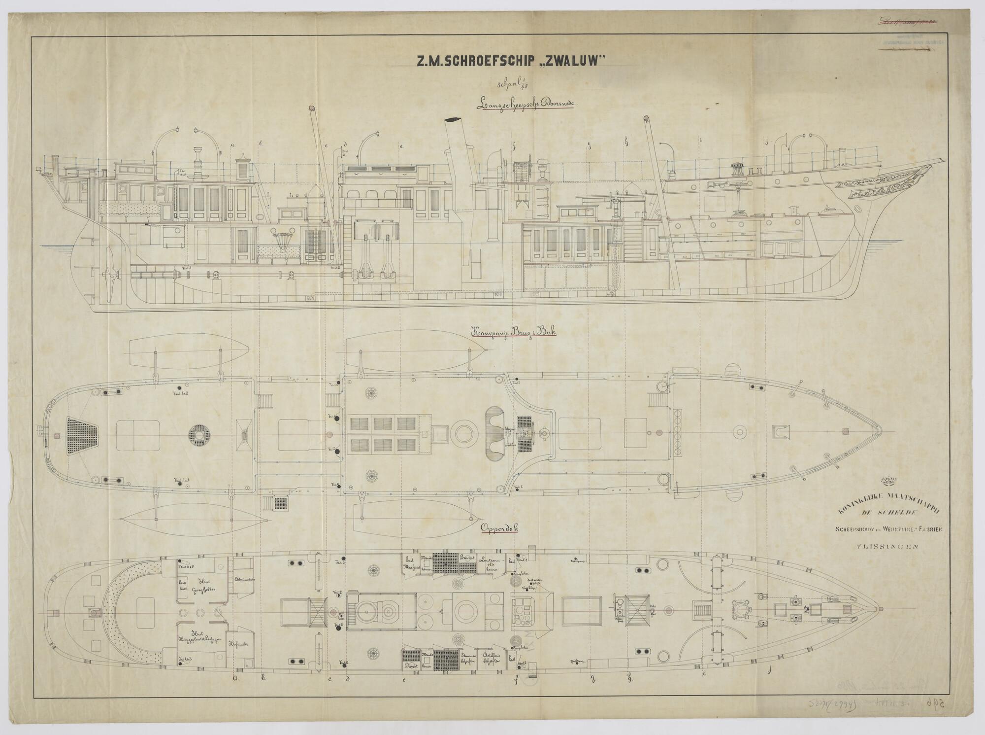 Dwarsdoorsnede over het bovendek van de stoomschepen...