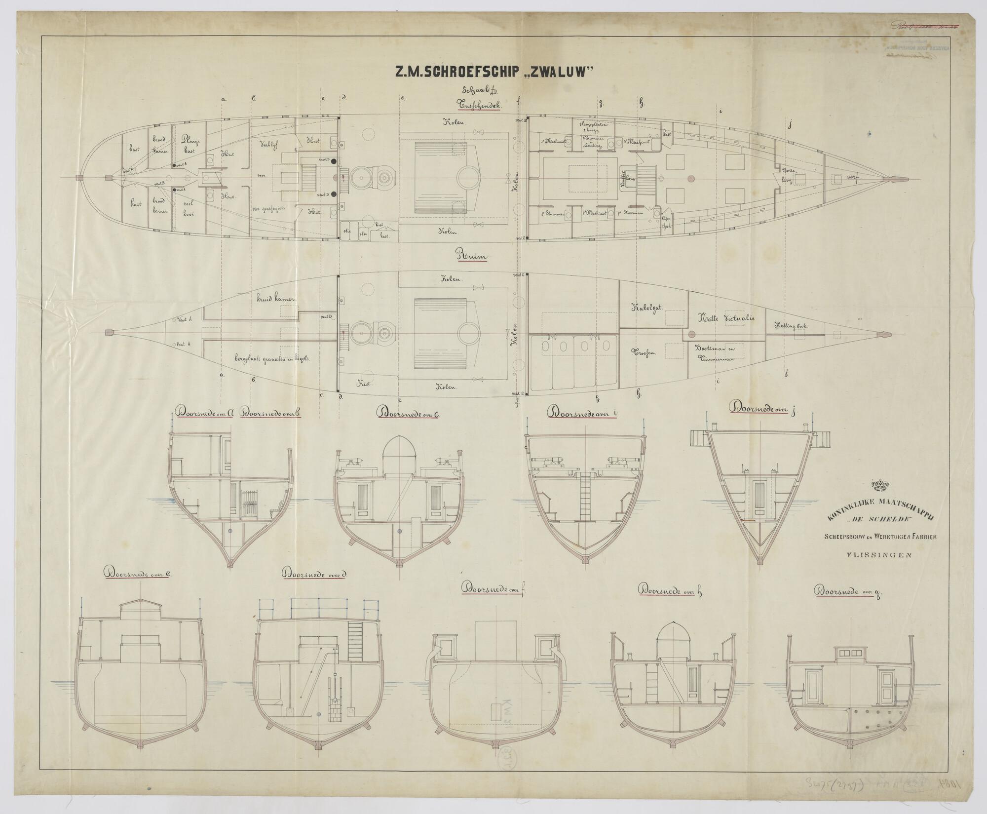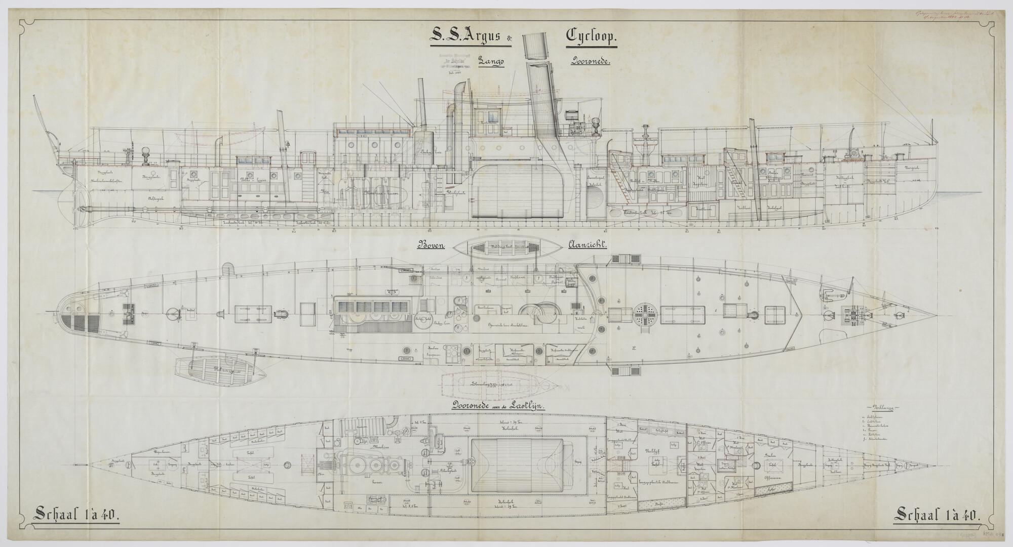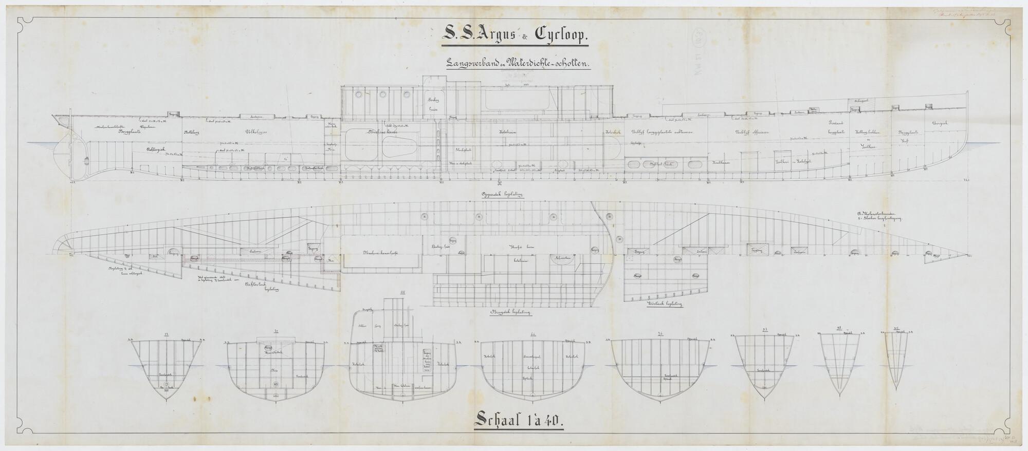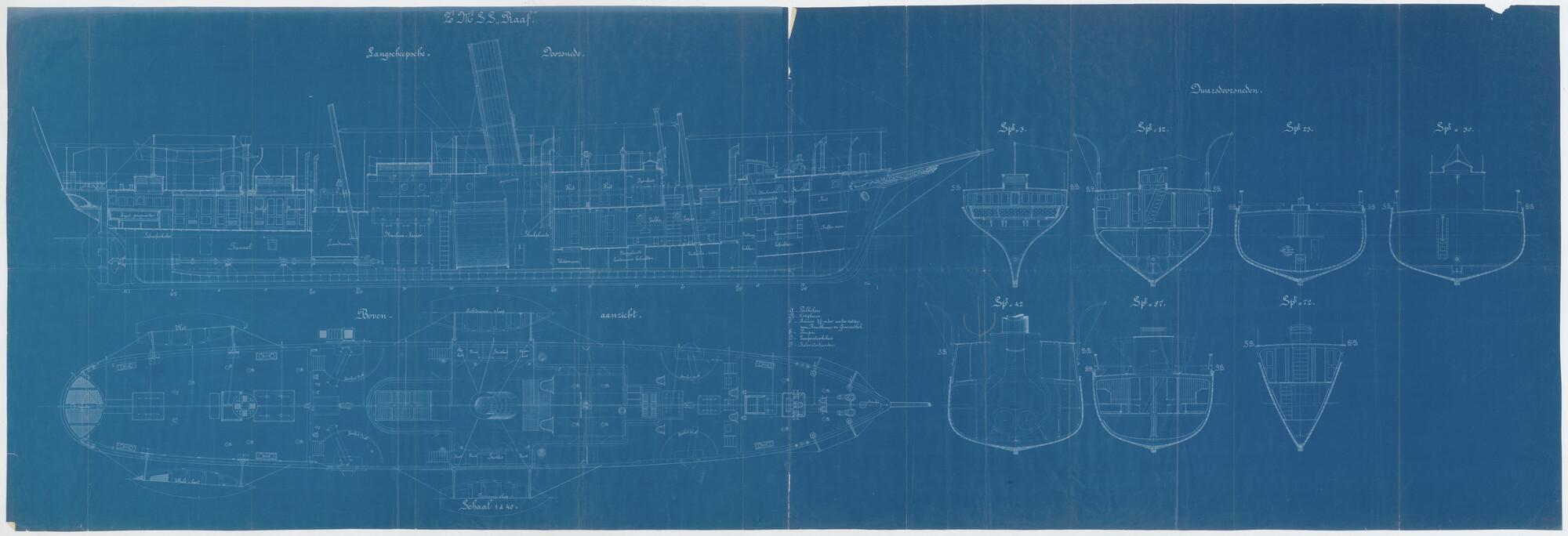 Langsscheepse doorsnede tot op de kiel, bovenaanzich...