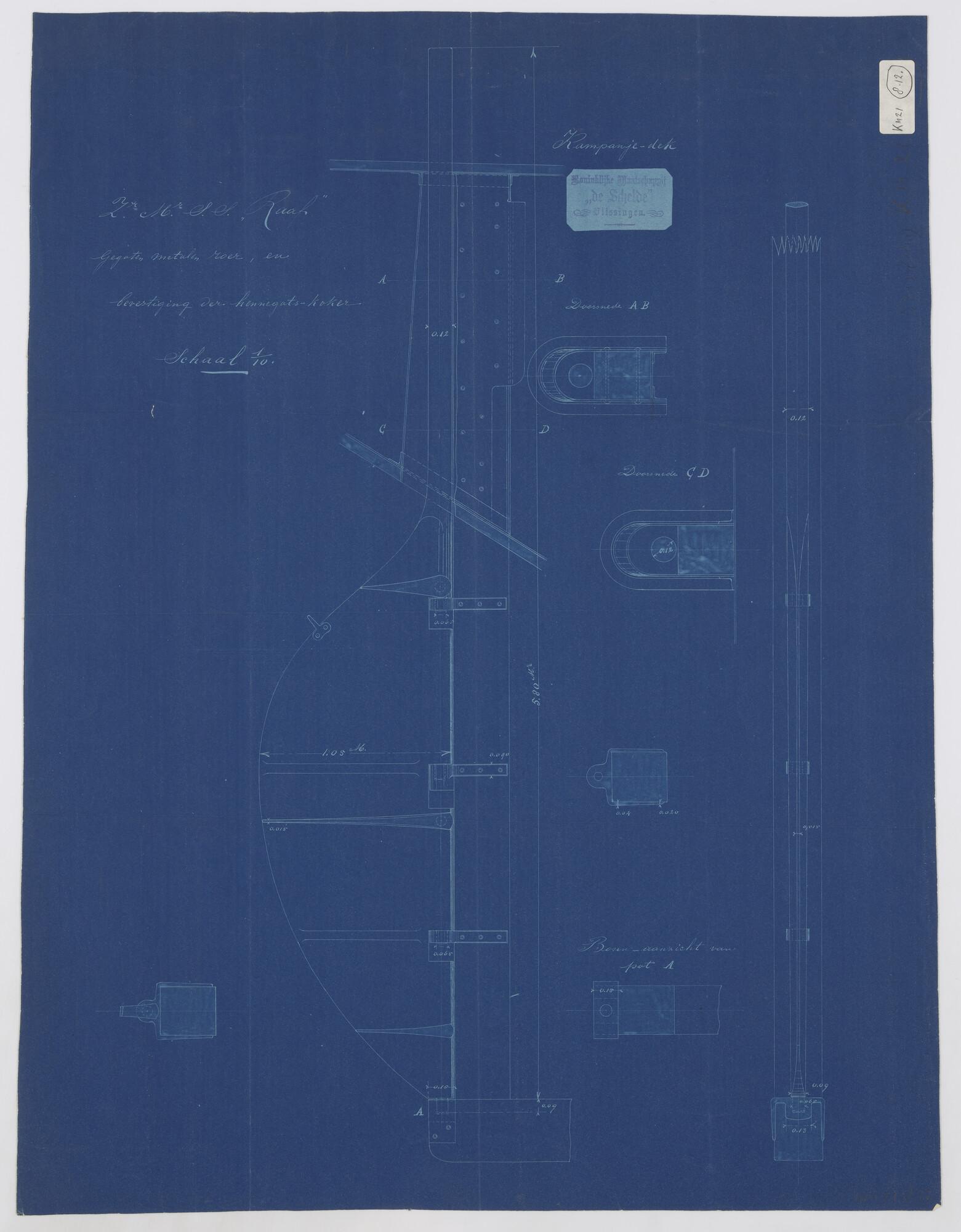 Gedetailleerde langsscheepse doorsnede van de schroe...