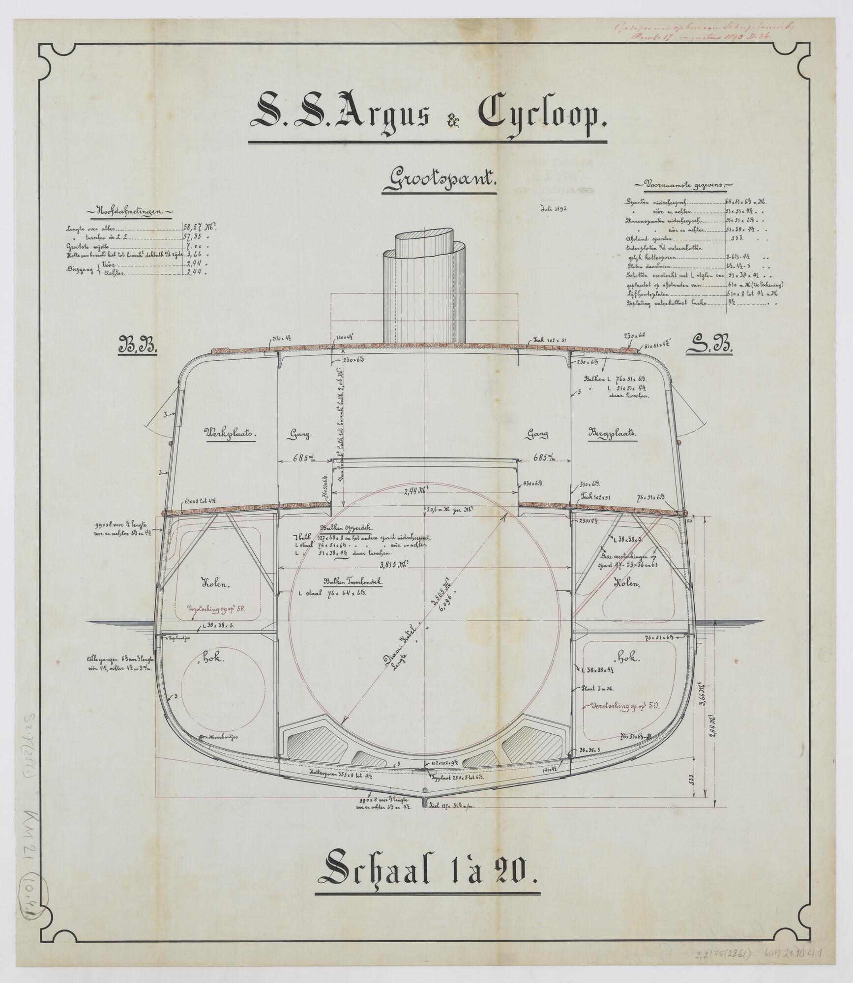 Dwarsdoorsnede over het grootspant van de stoomschep...
