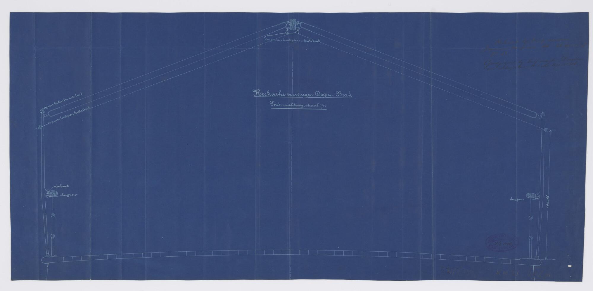 Lijnentekening, spantenraam en overzicht van de hoof...