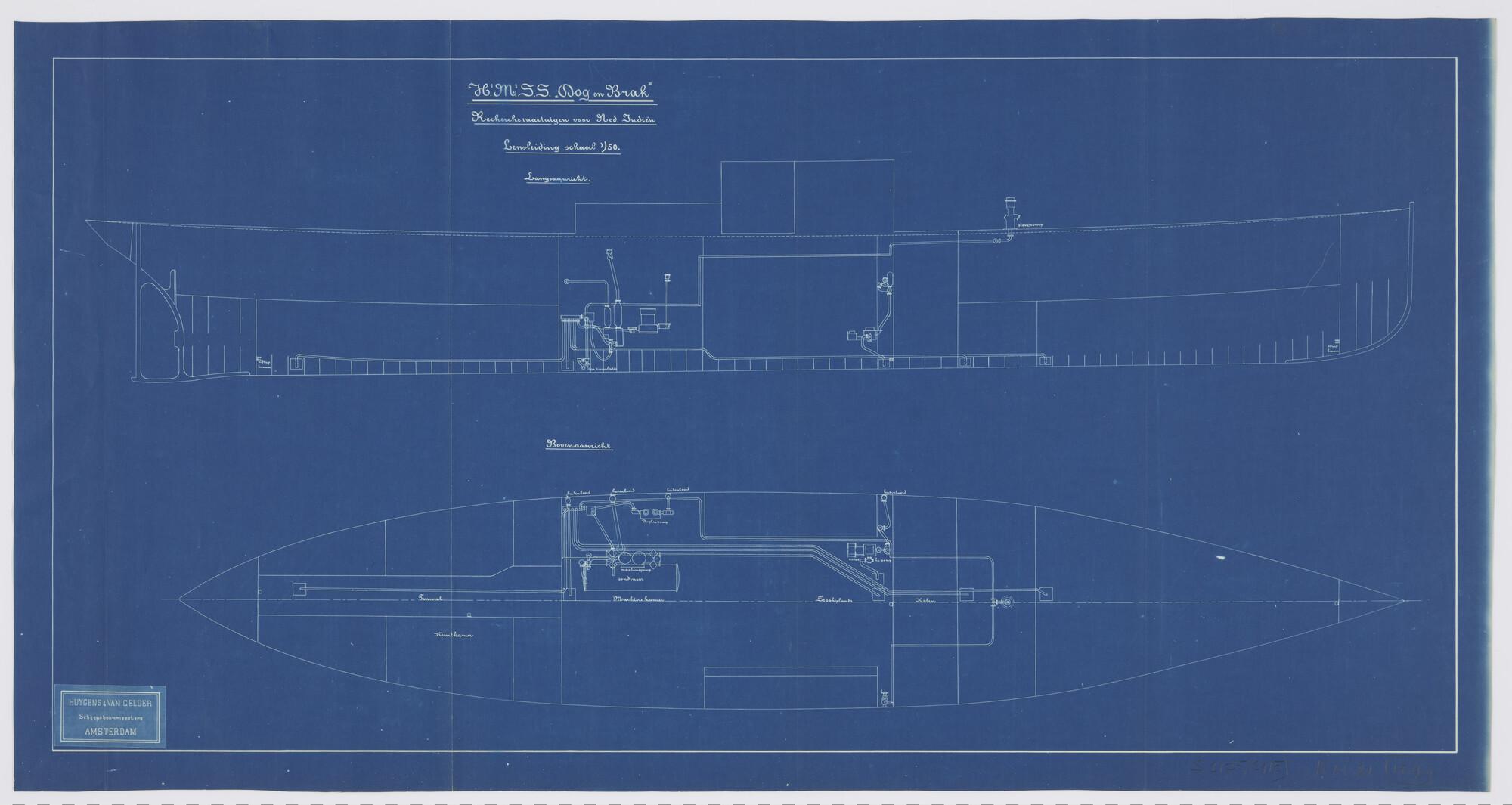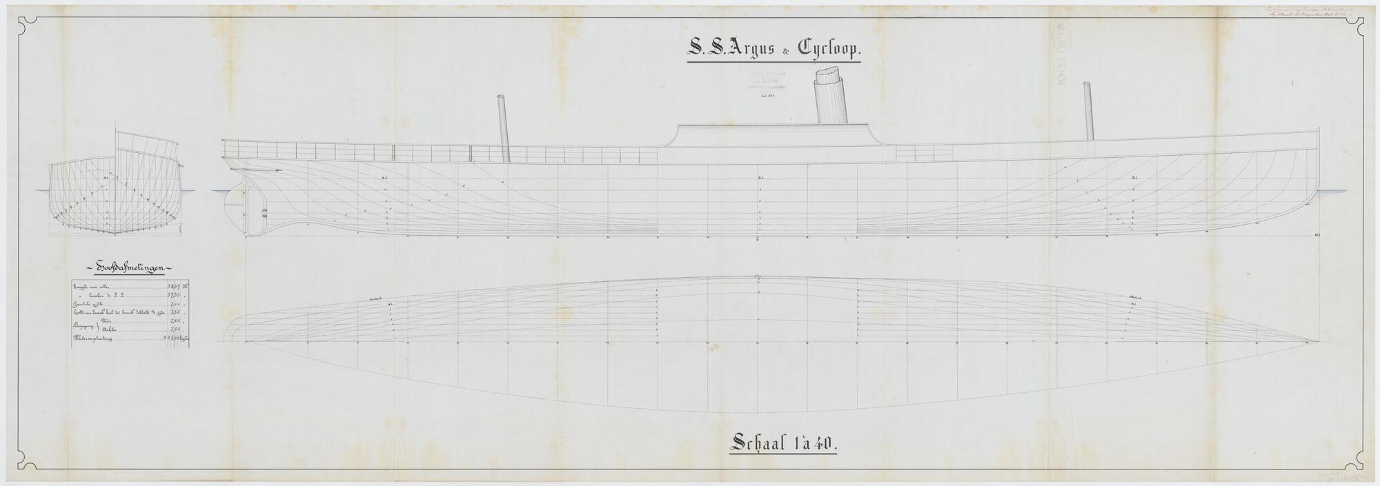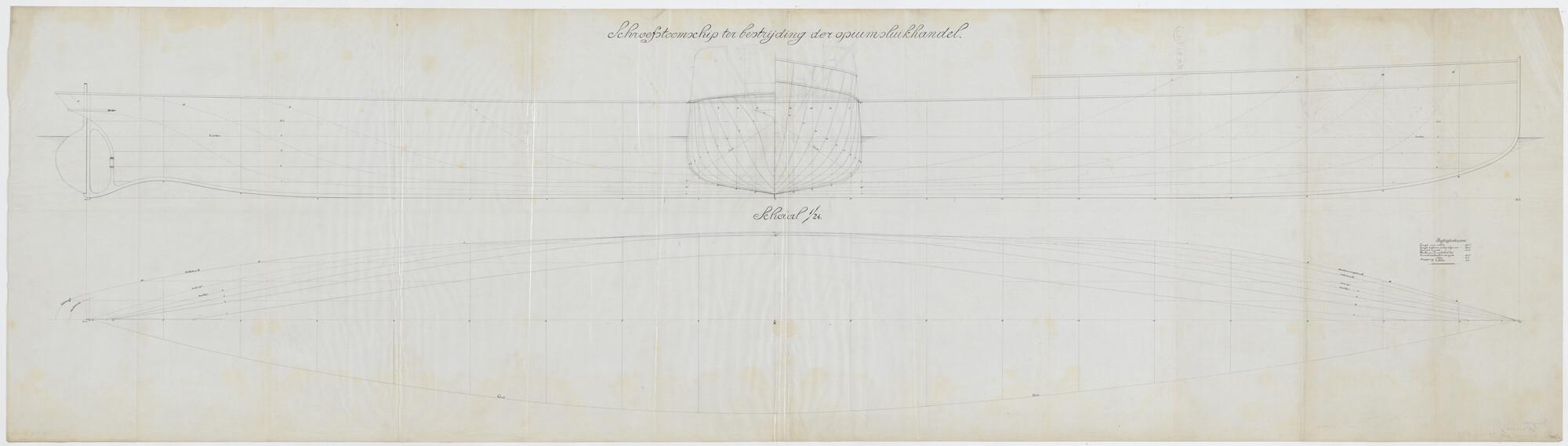 Lijnentekening en spantenraam van de stoomschepen vo...