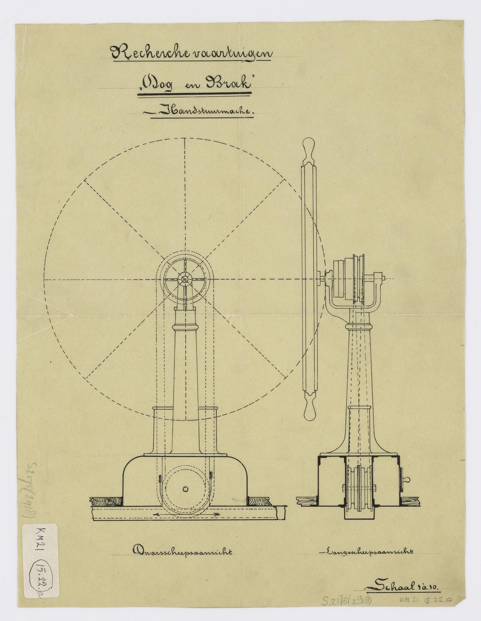 Langsdoorsnede en dwarsdoorsnede van de handstuurmac...