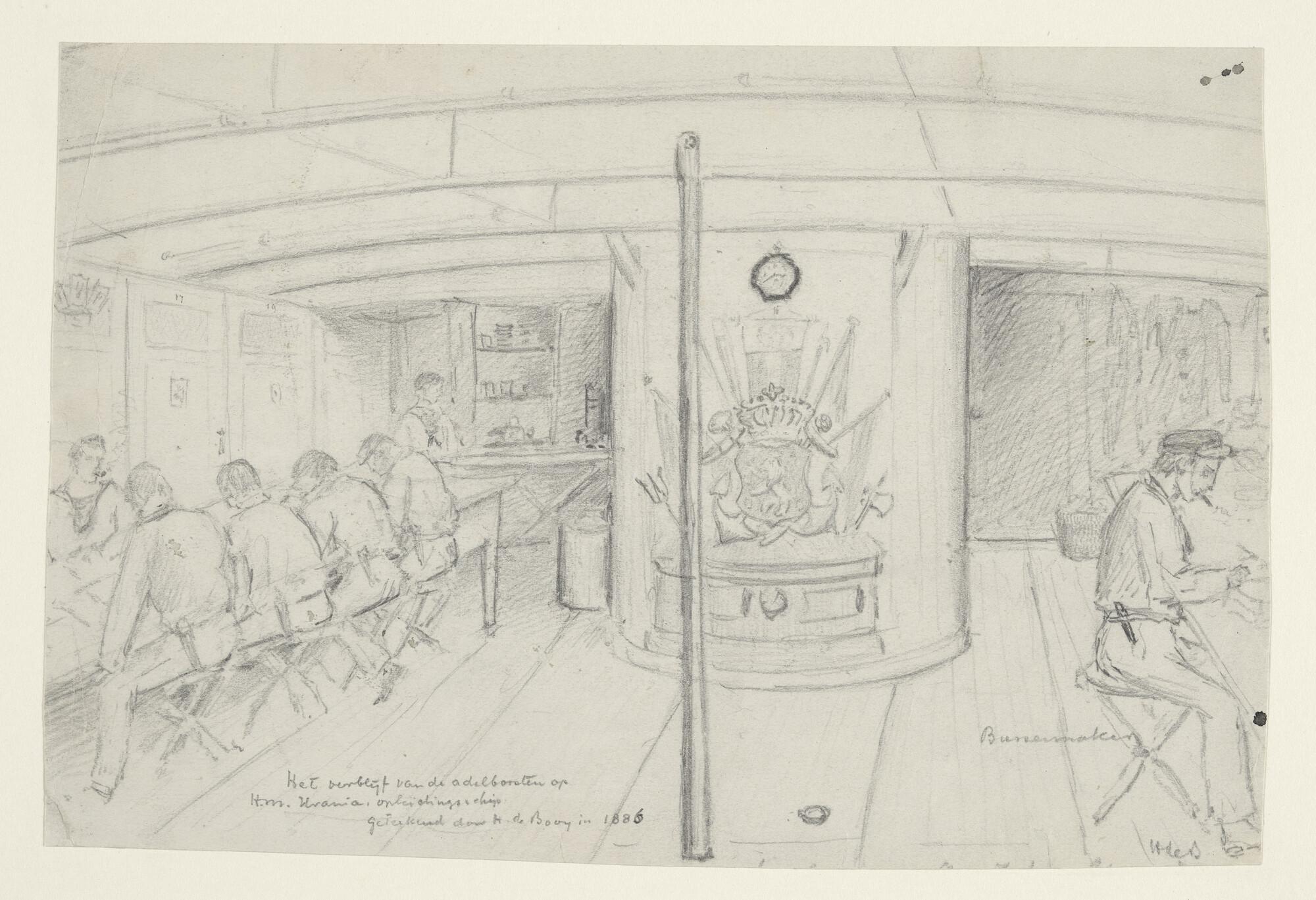 Indelingstekeningen van de kampanje, het brugdek, he...