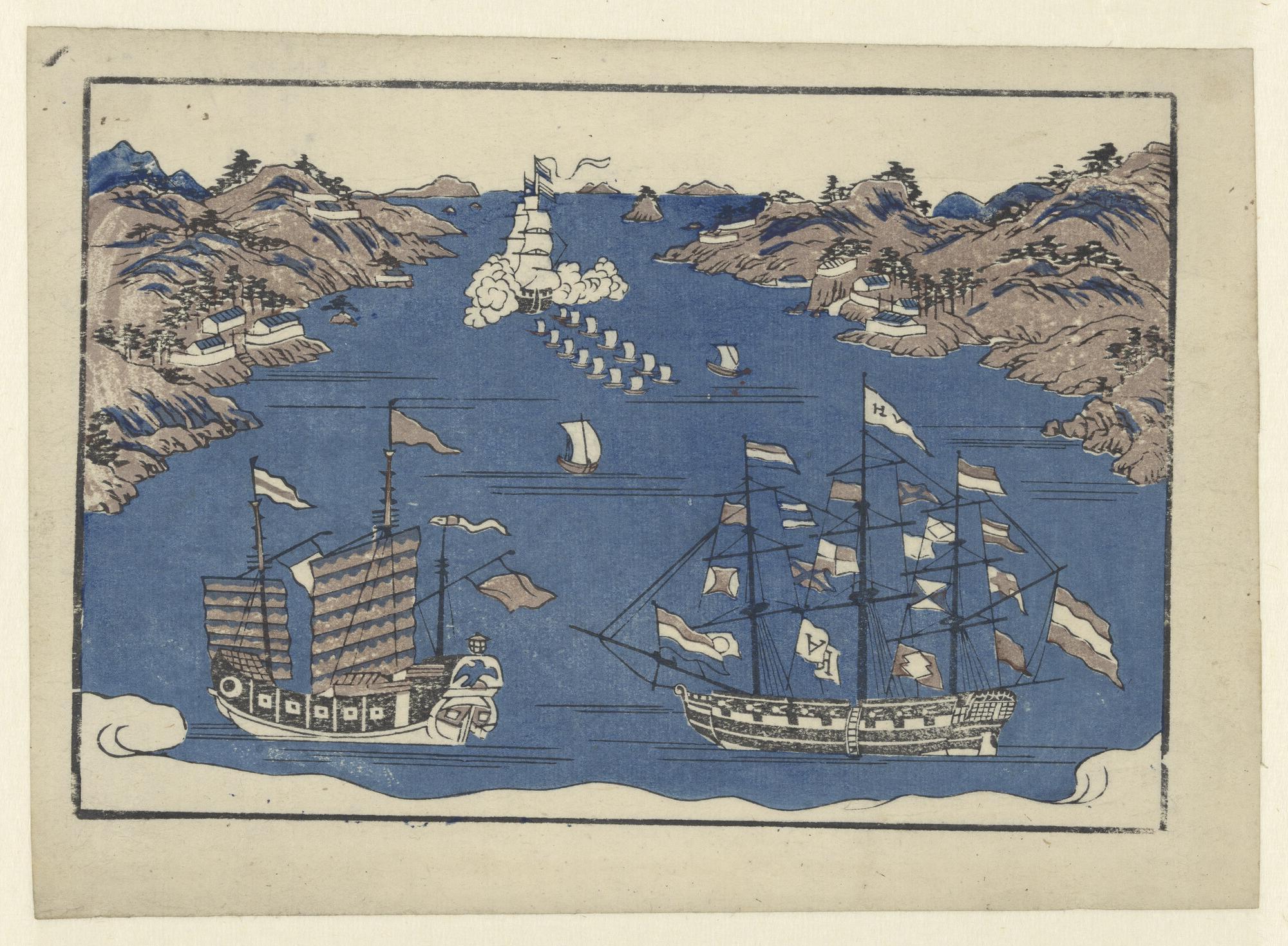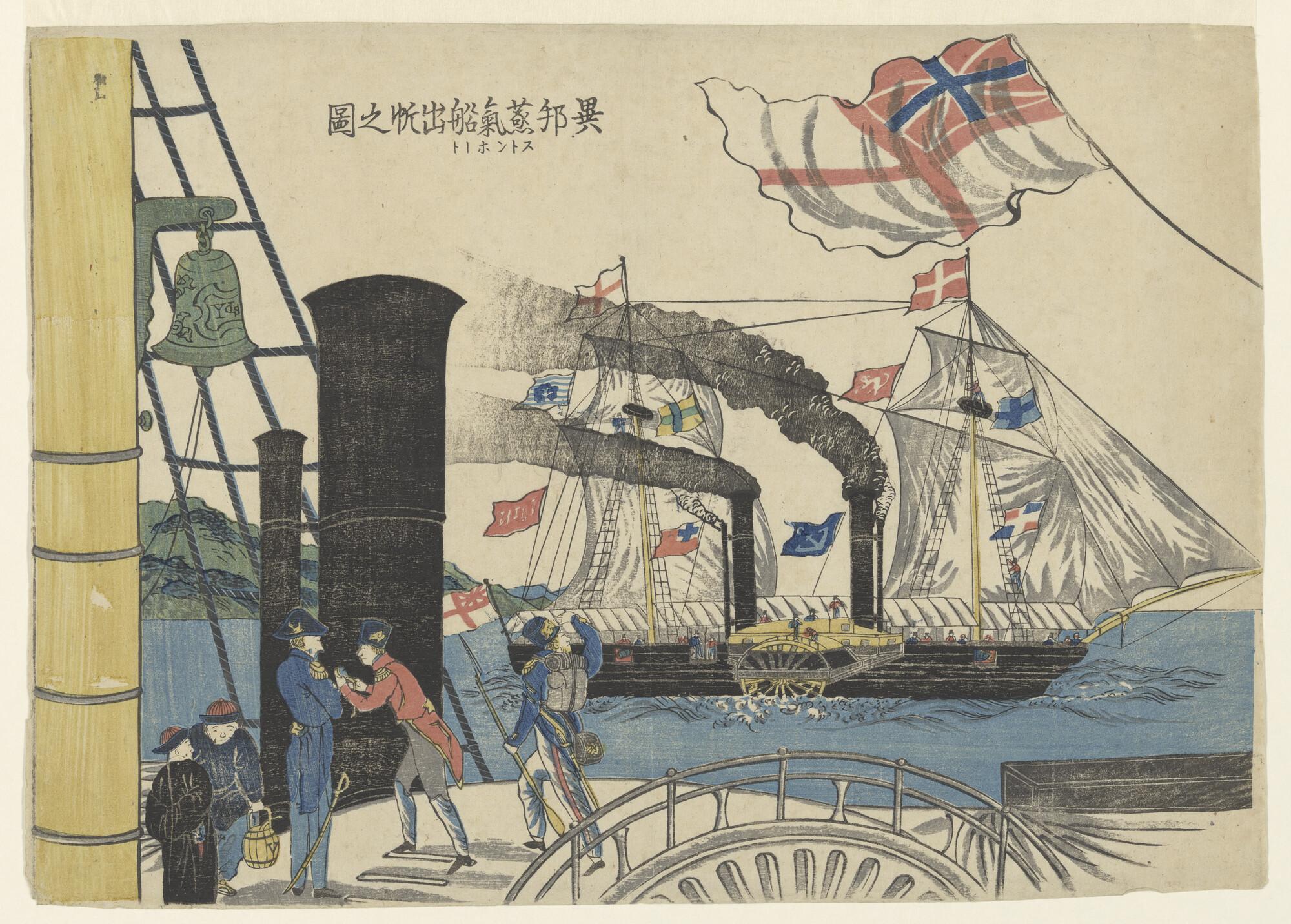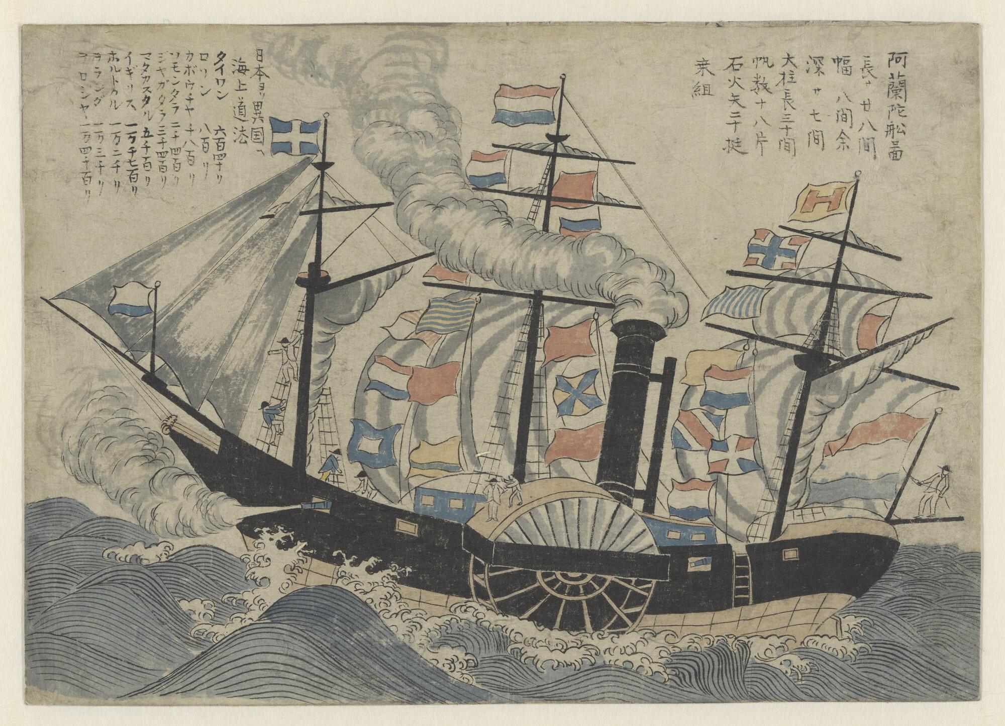Zijaanzicht van de stoomschepen voor de gouvernement...