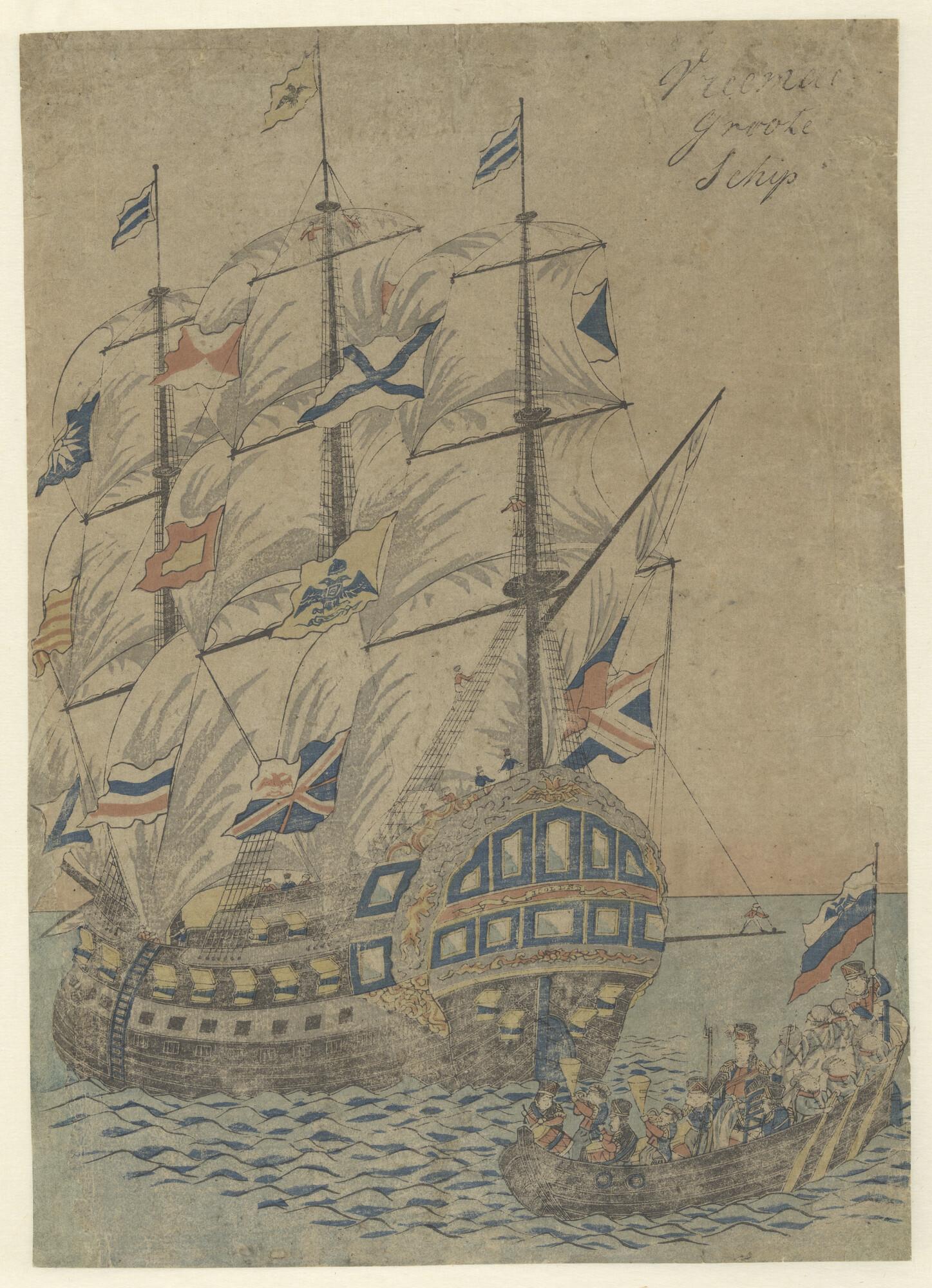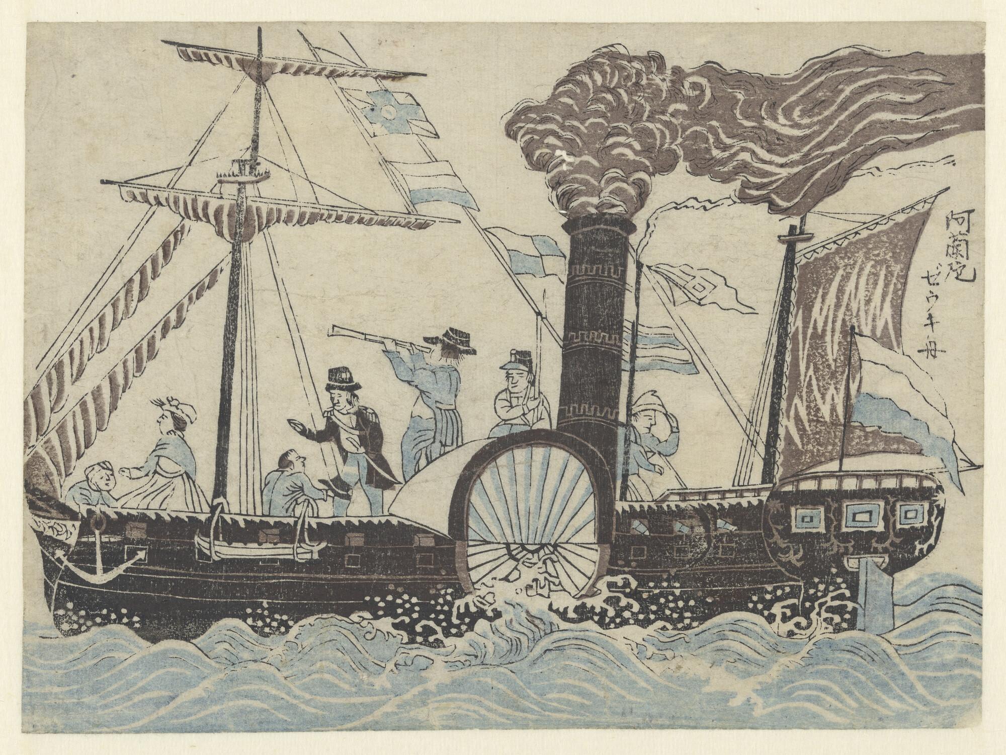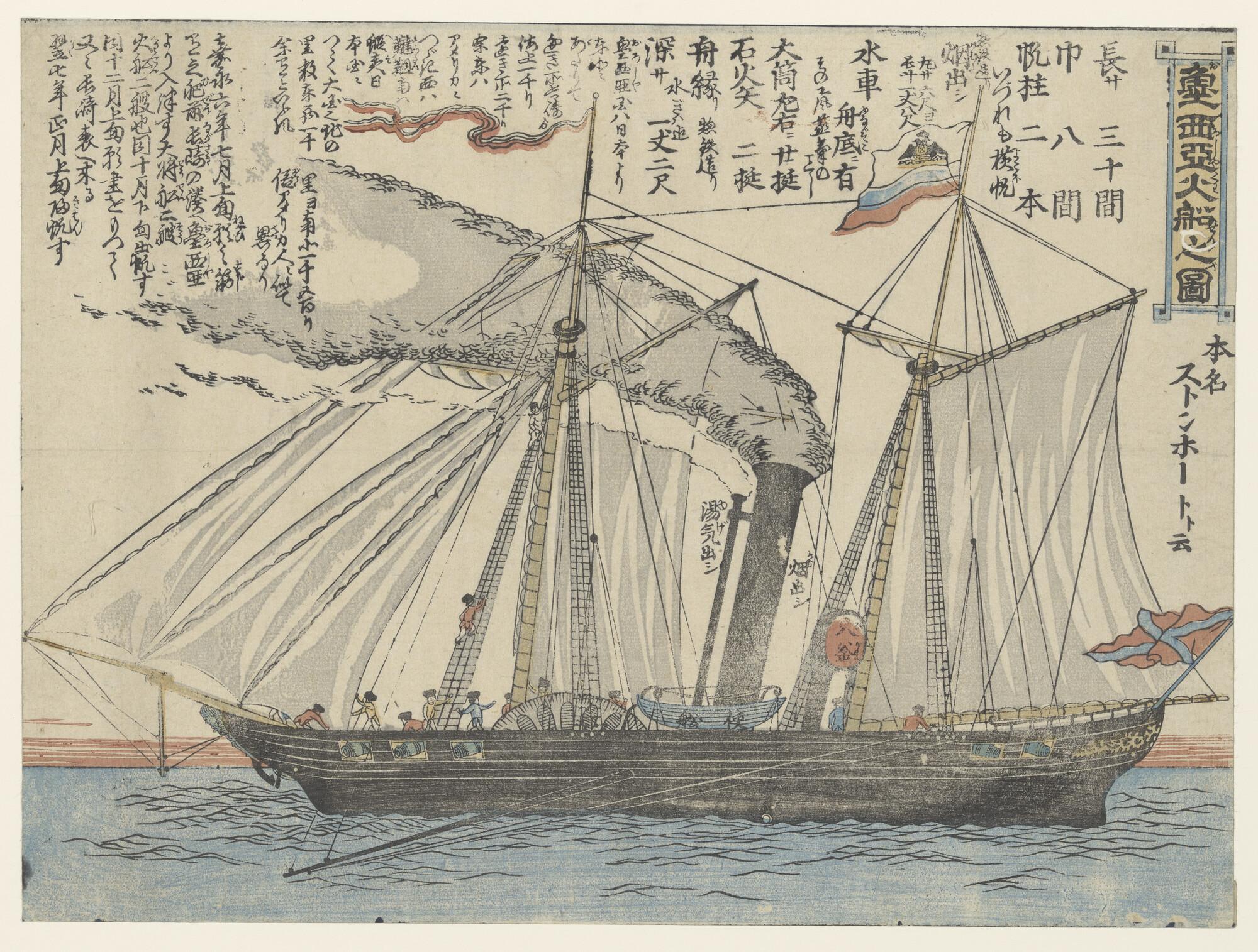 Zijaanzicht van de stoomschepen voor de gouvernement...