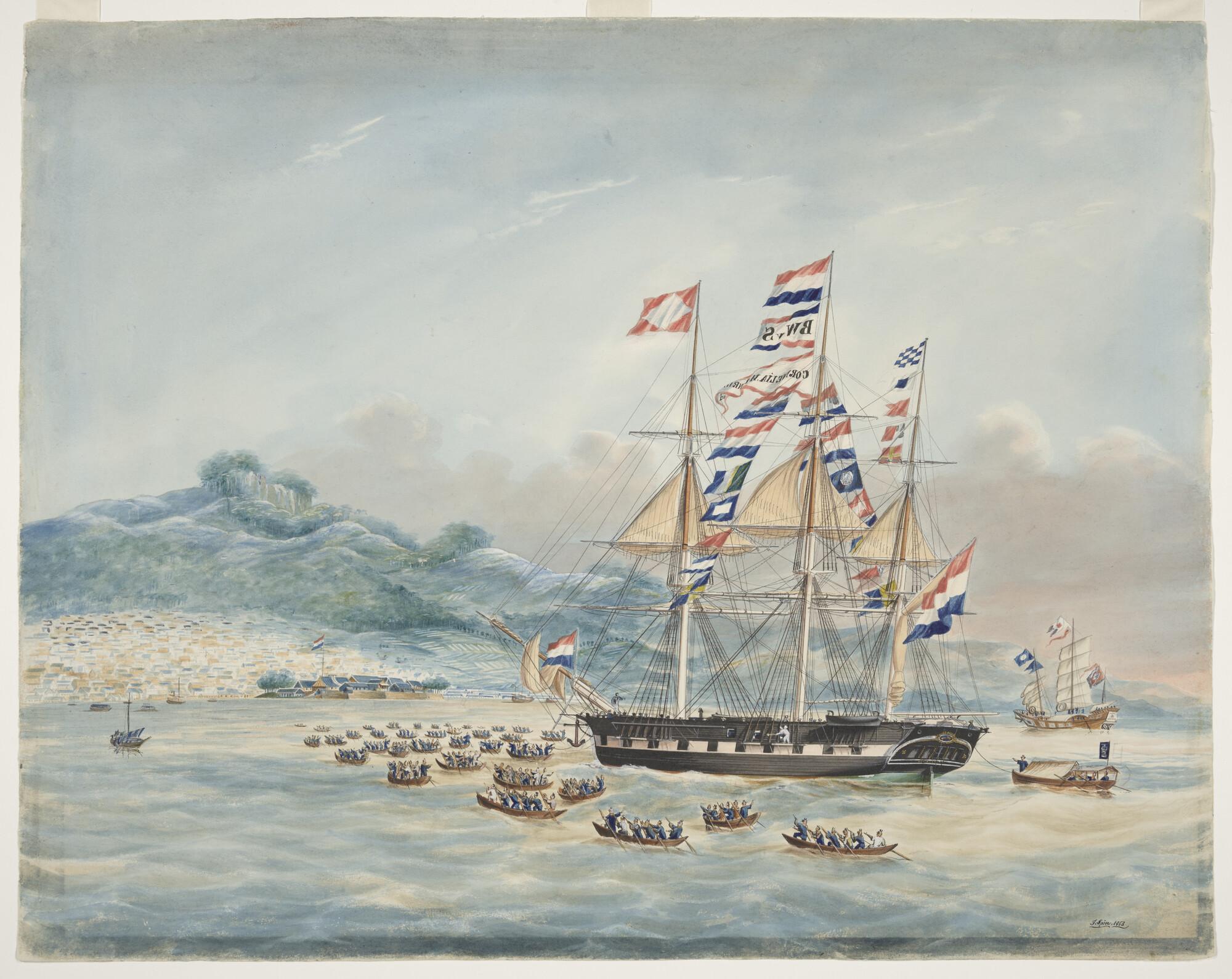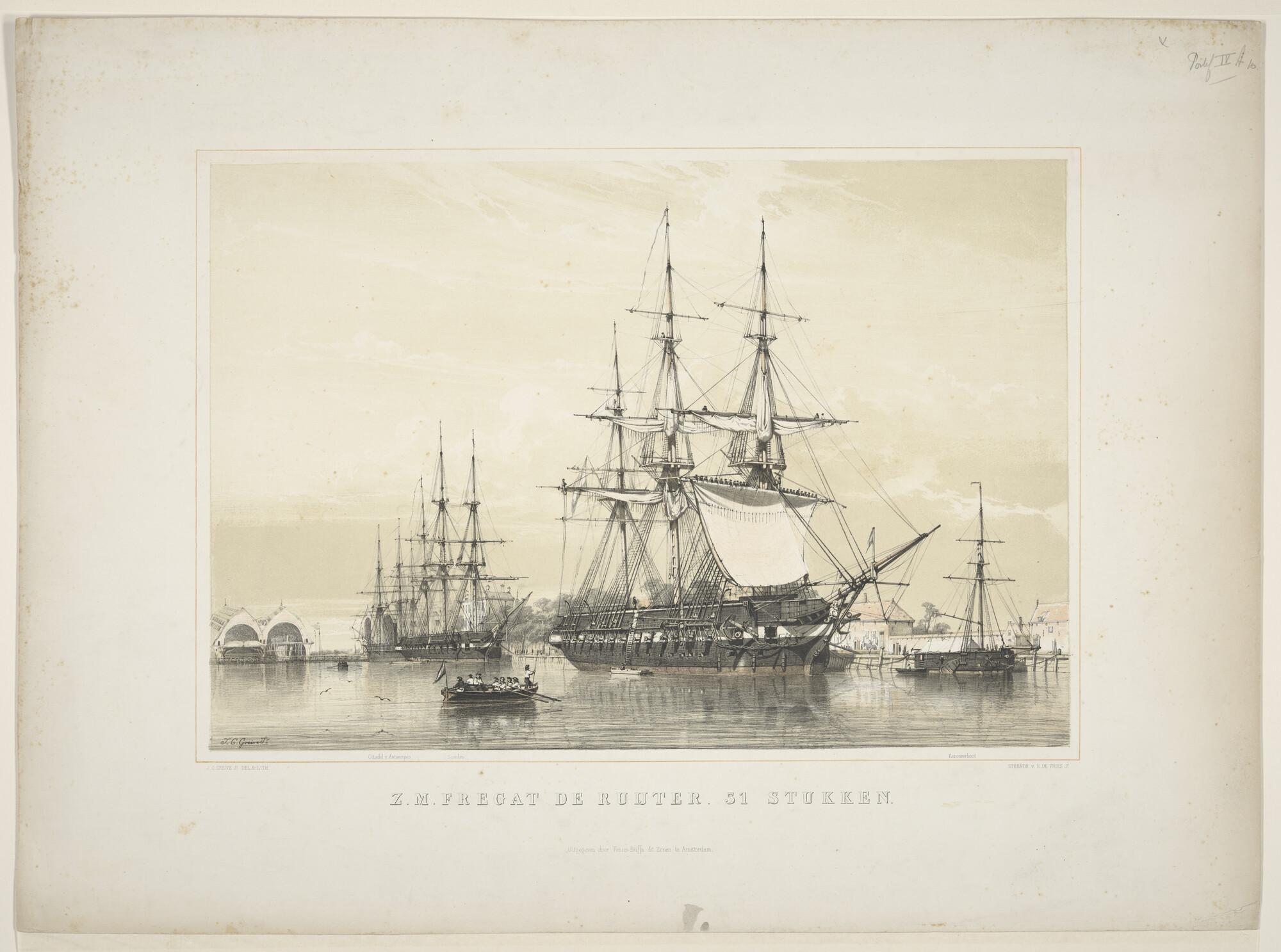 Het fregatschip Cornelia Henriette op de rede van De...