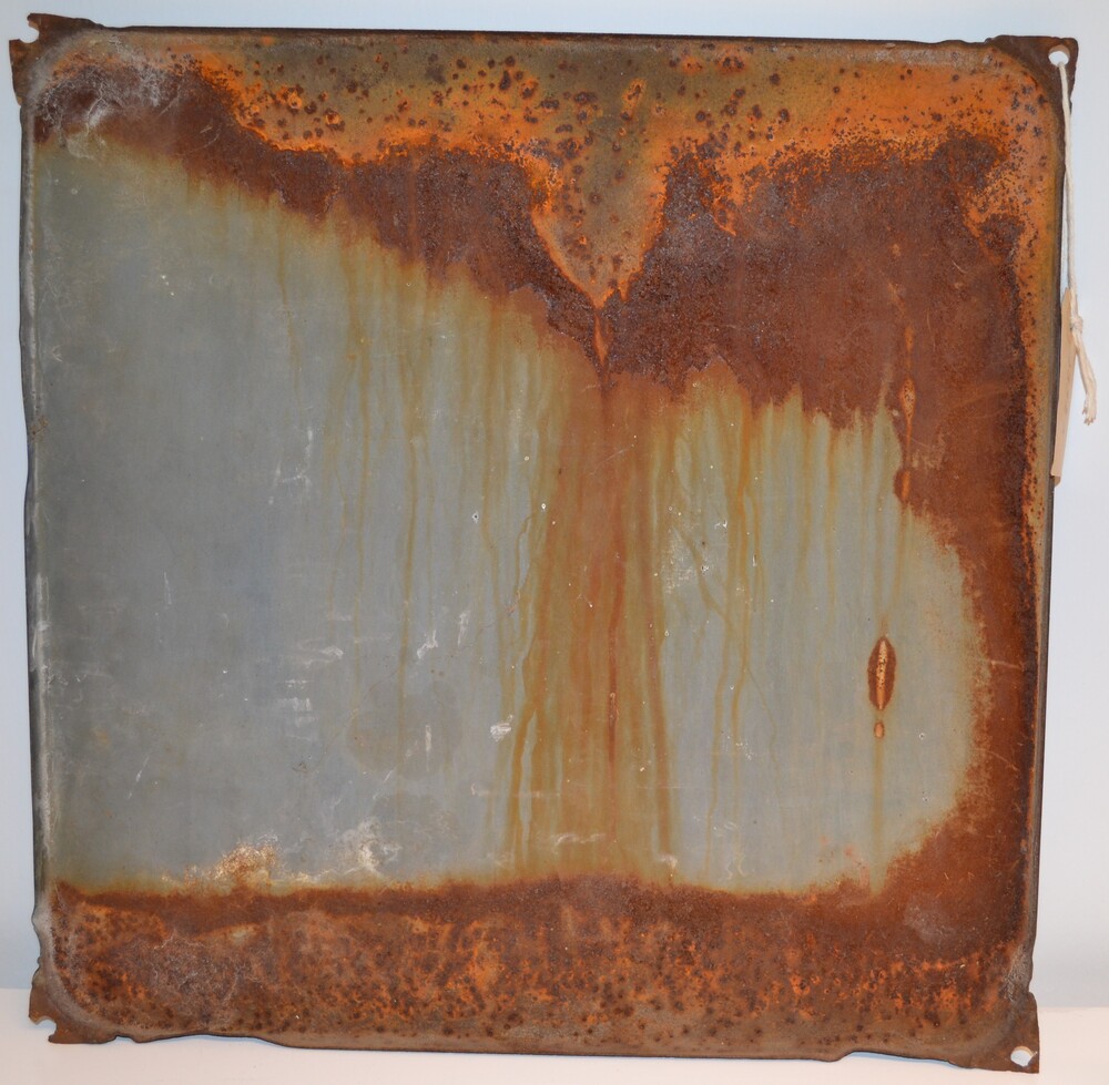 Reclamebord van ijzer gelakt in blauw rood en wit vo...