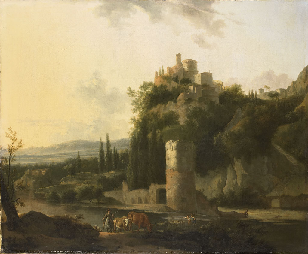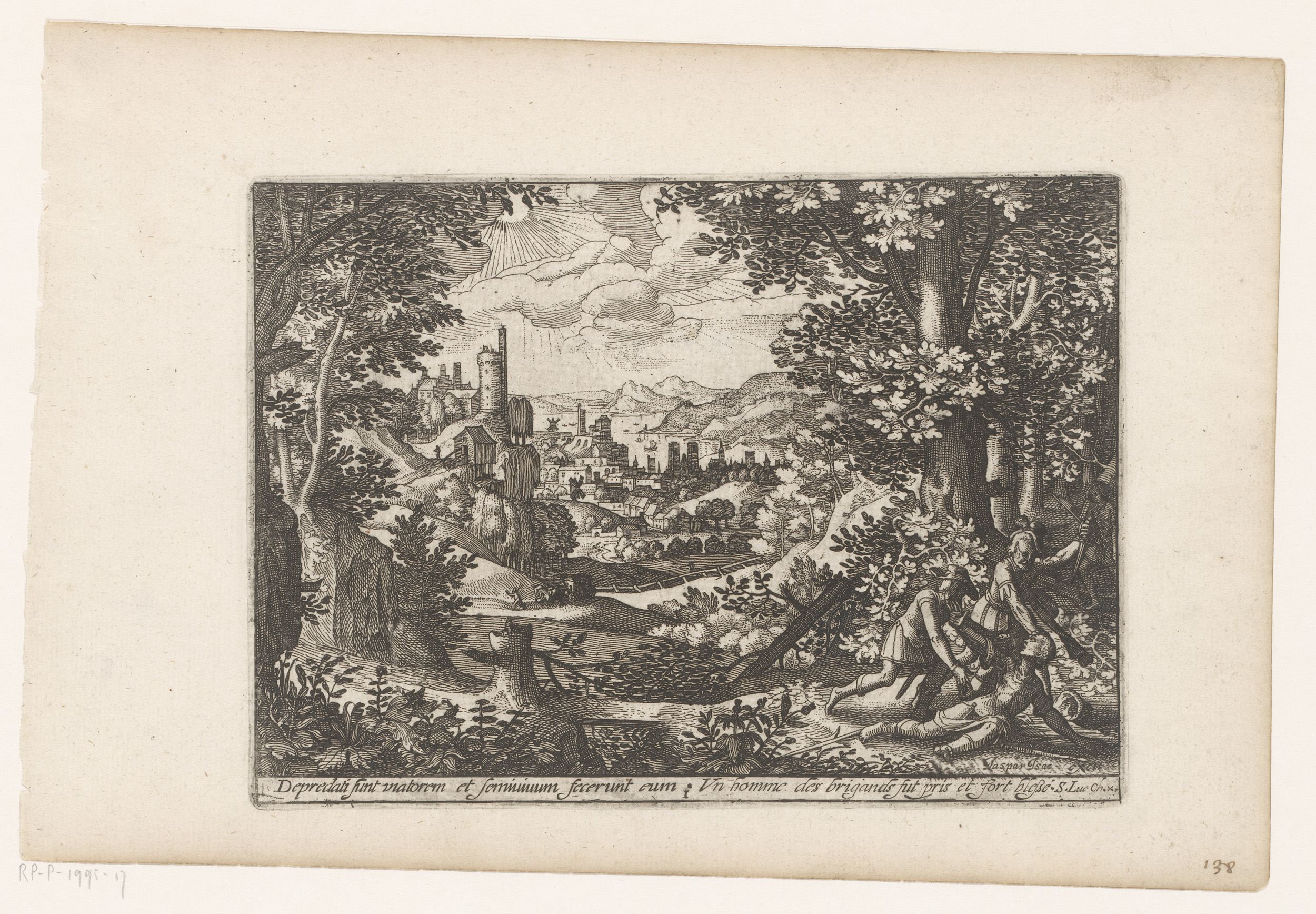 Landschap met verhaal van de barmhartige Samaritaan:...