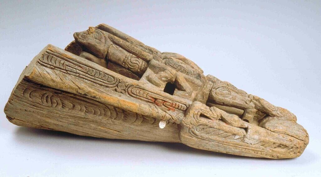 Voorouderbeeld van een staande persoon met een balus...
