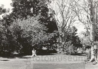 Mevrouw Holzknecht in haar tuin. Kayapit.