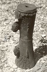 Trom met als handvatten twee mensenkopjes.