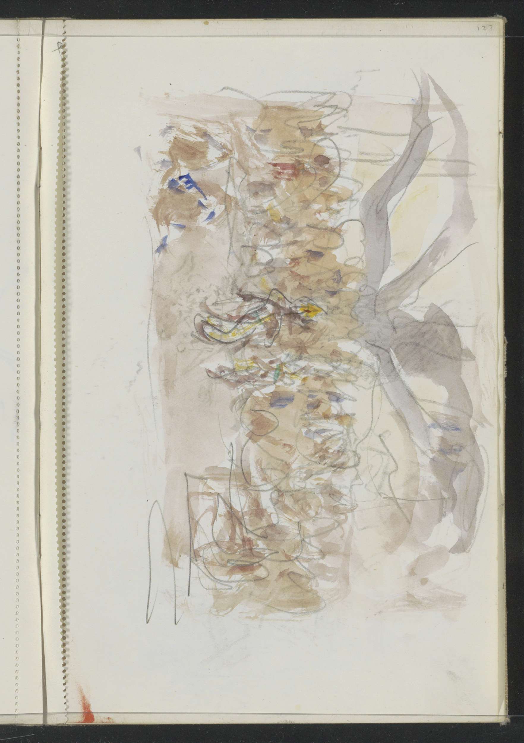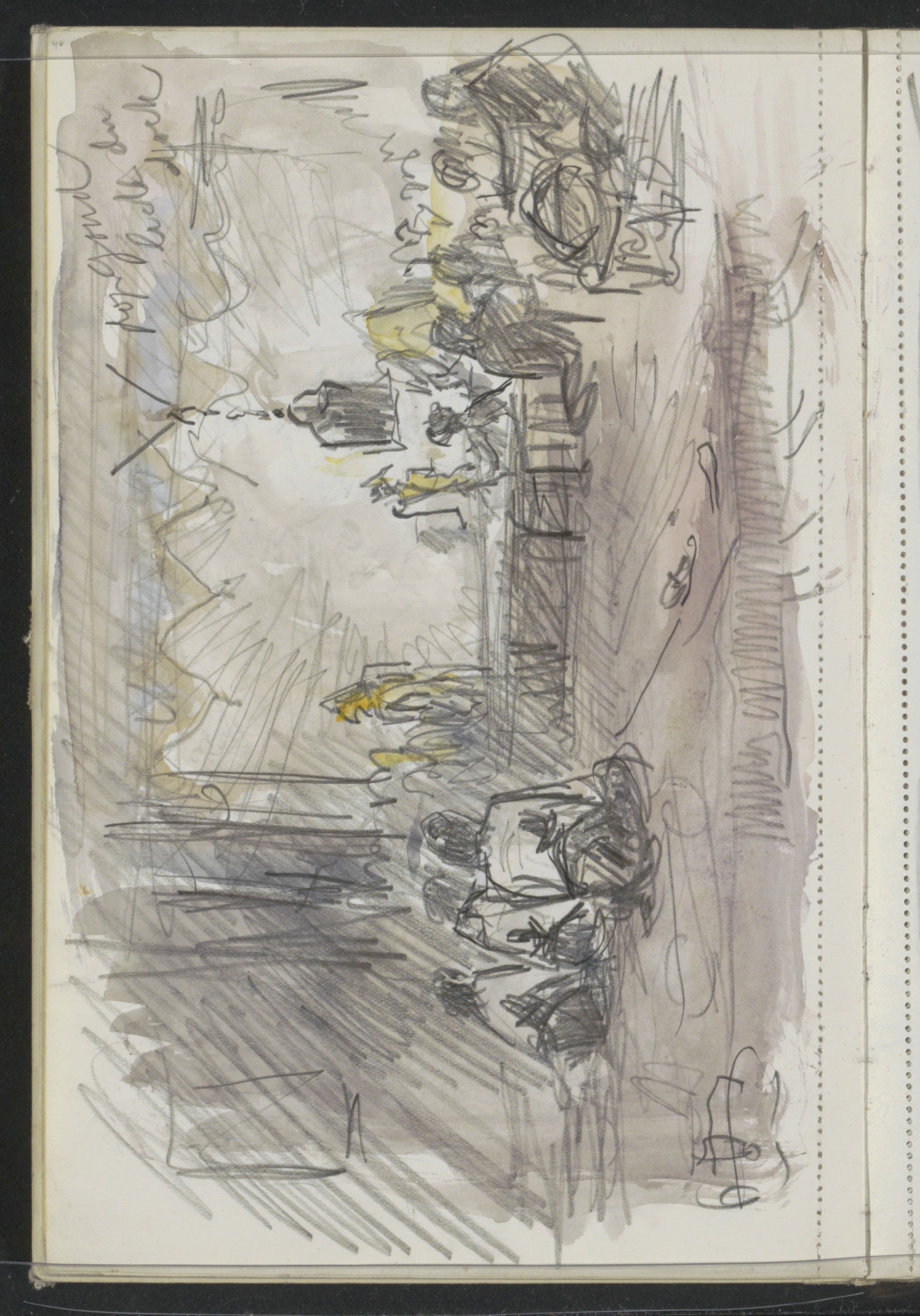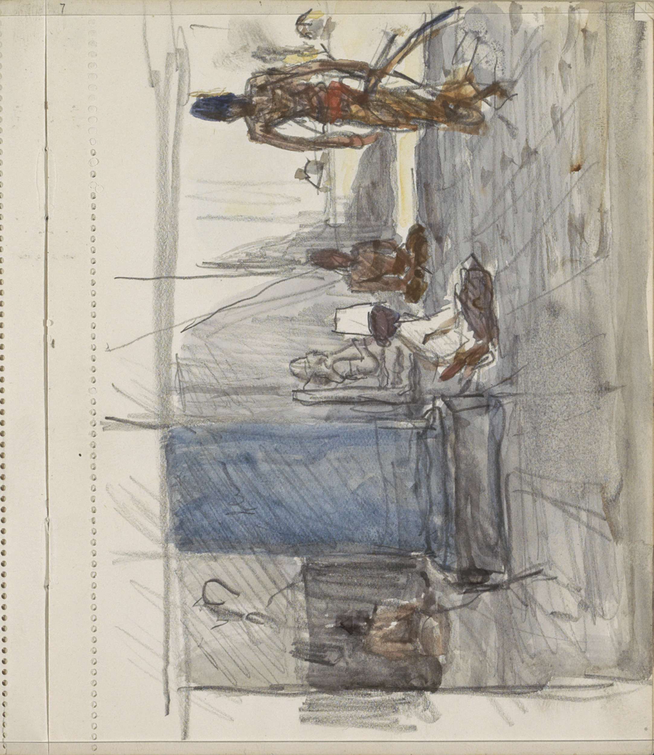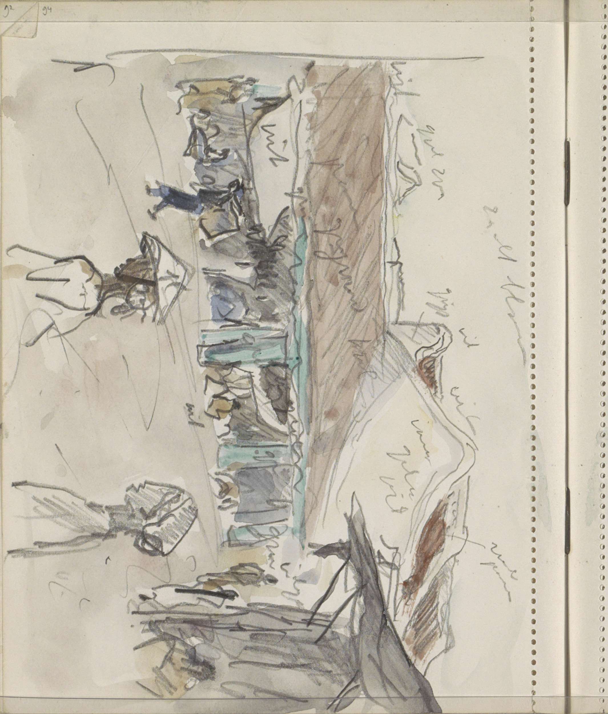 Figuren bij een met bloemen bezaaide trap naar een a...