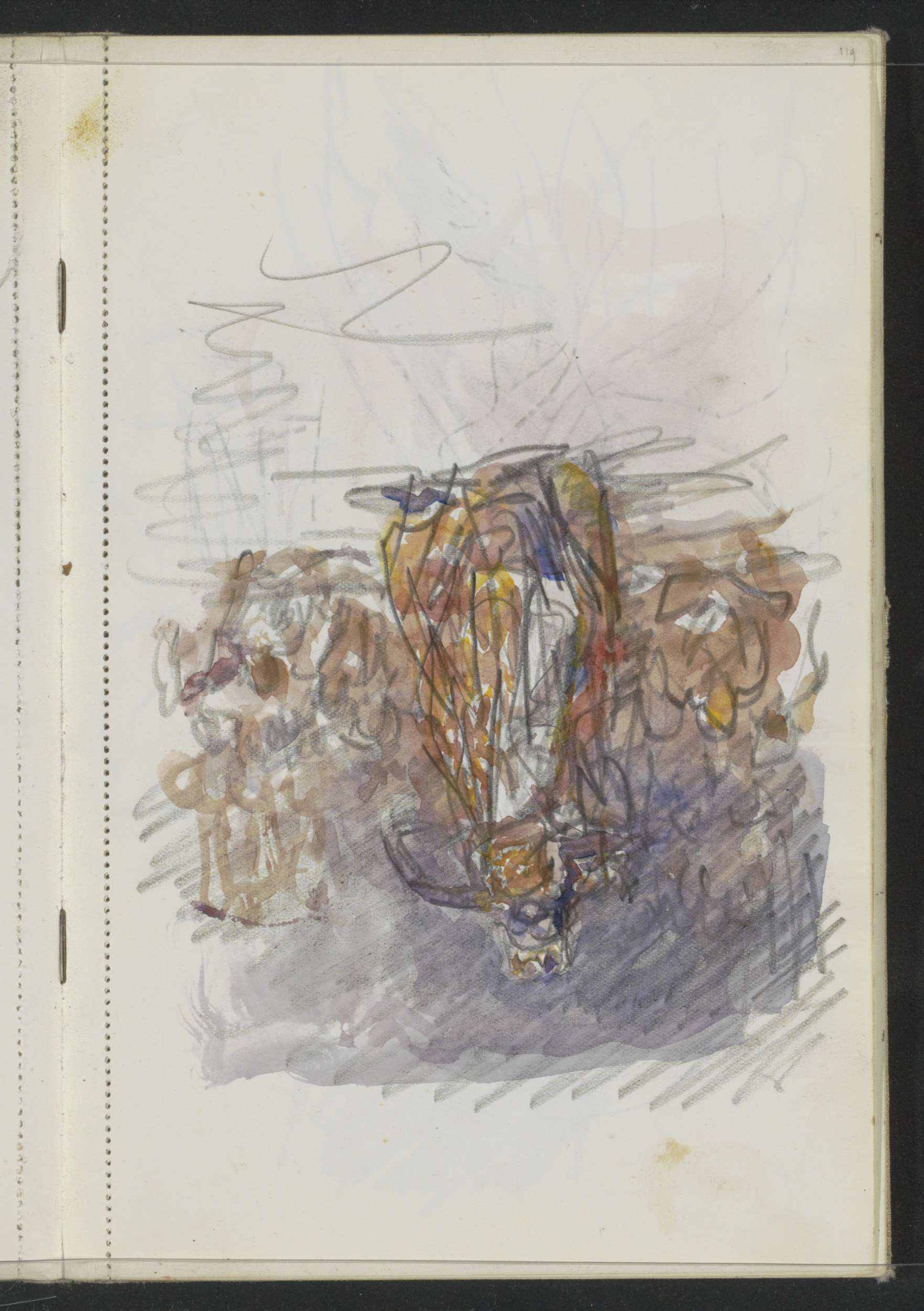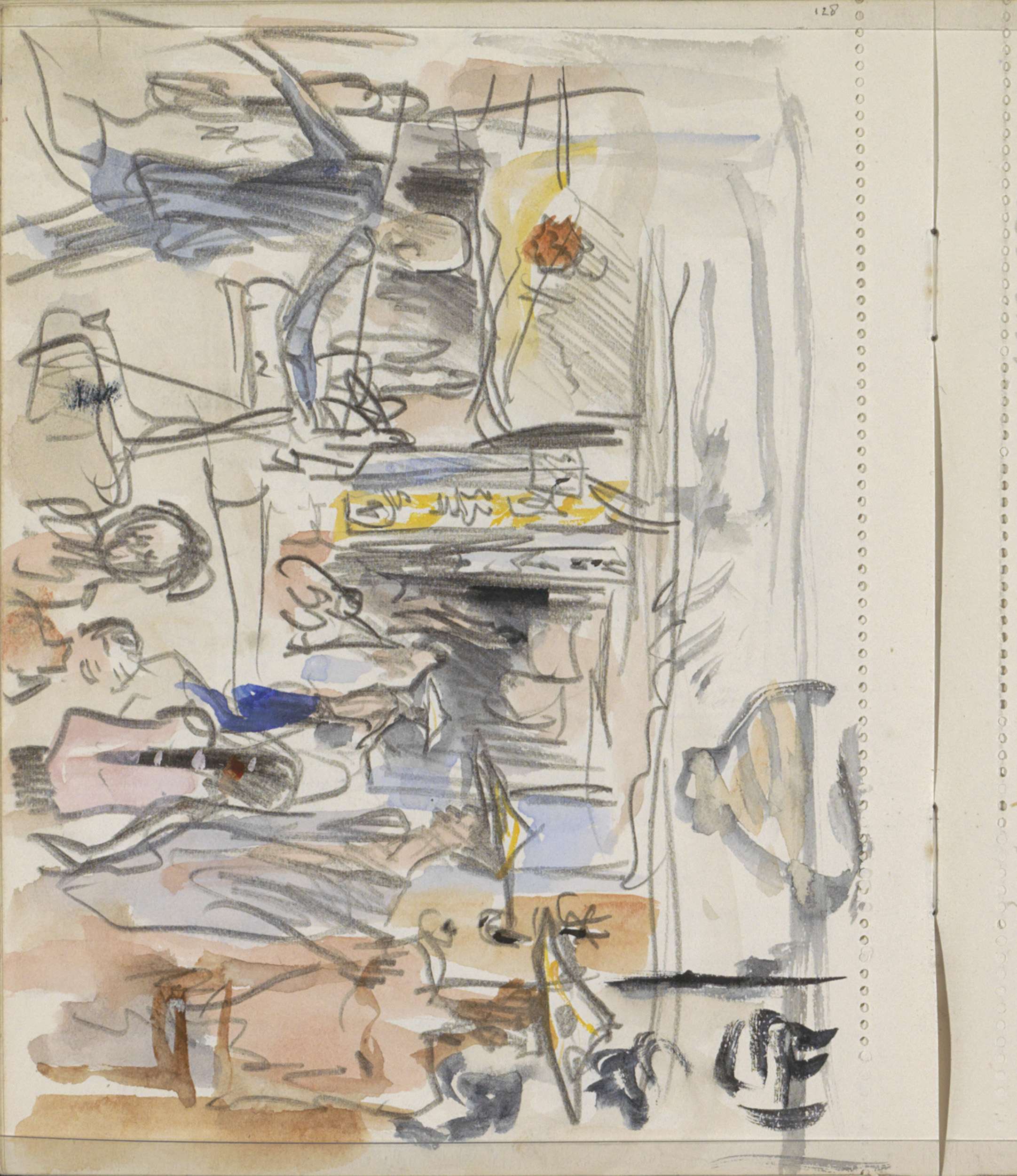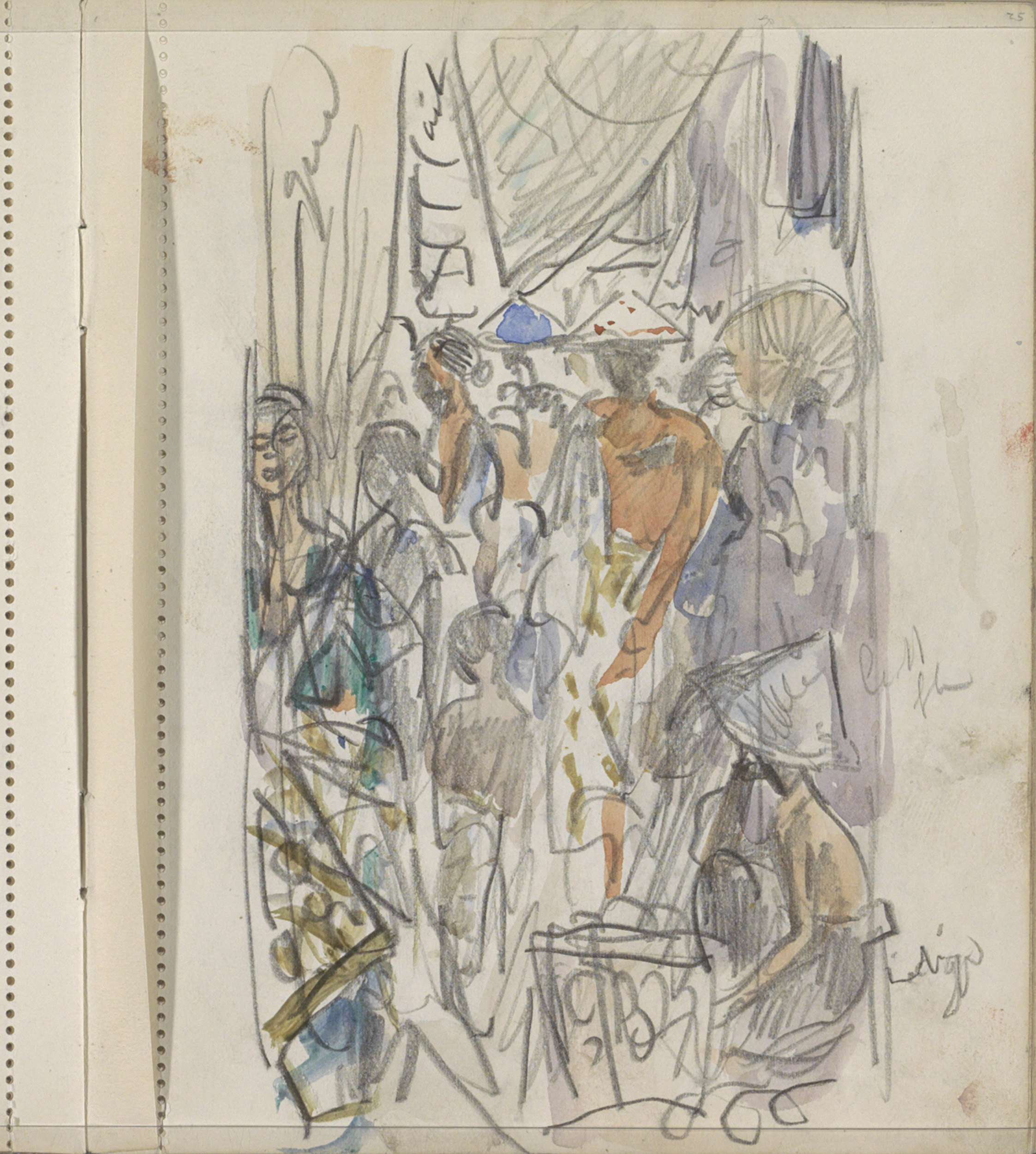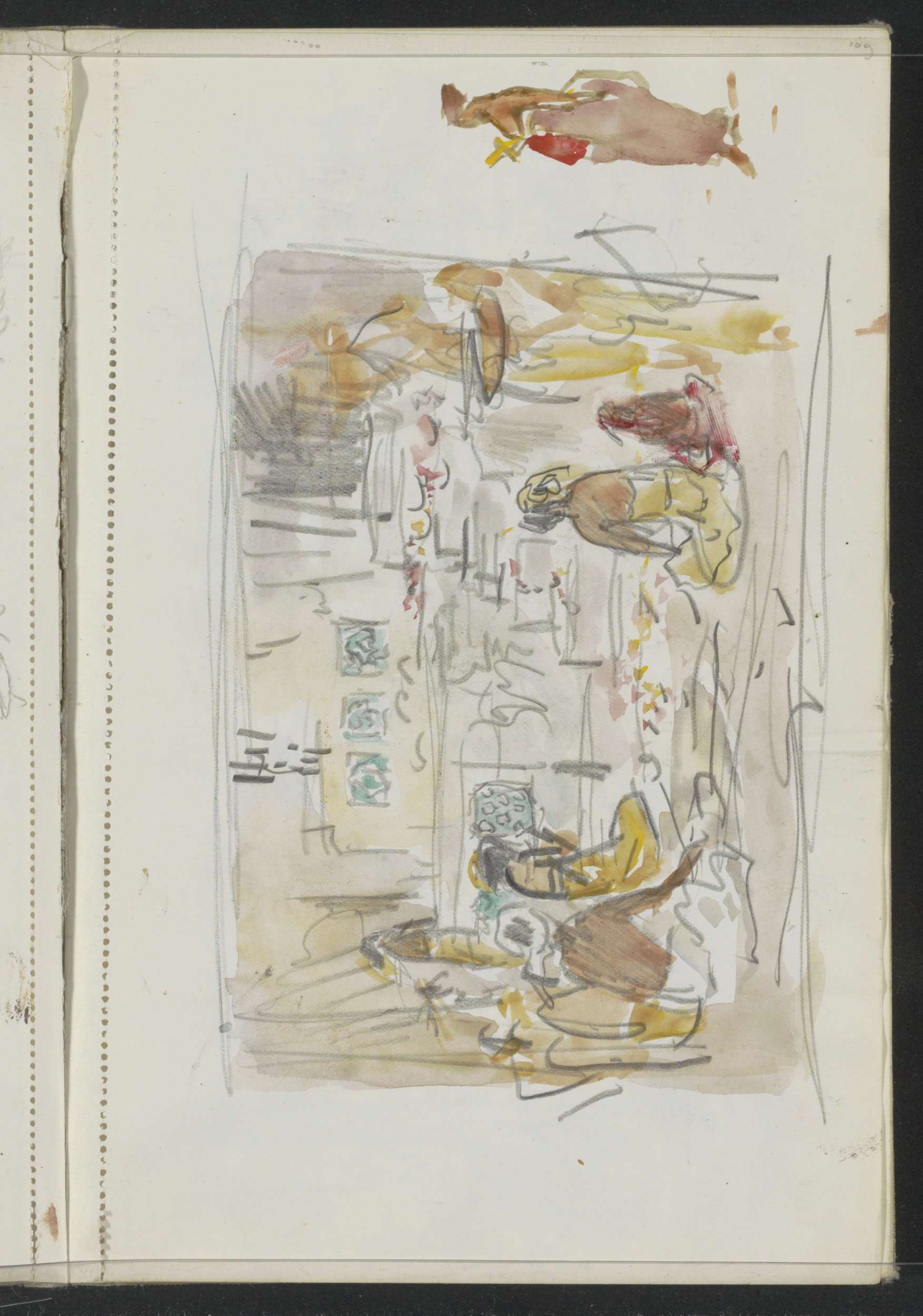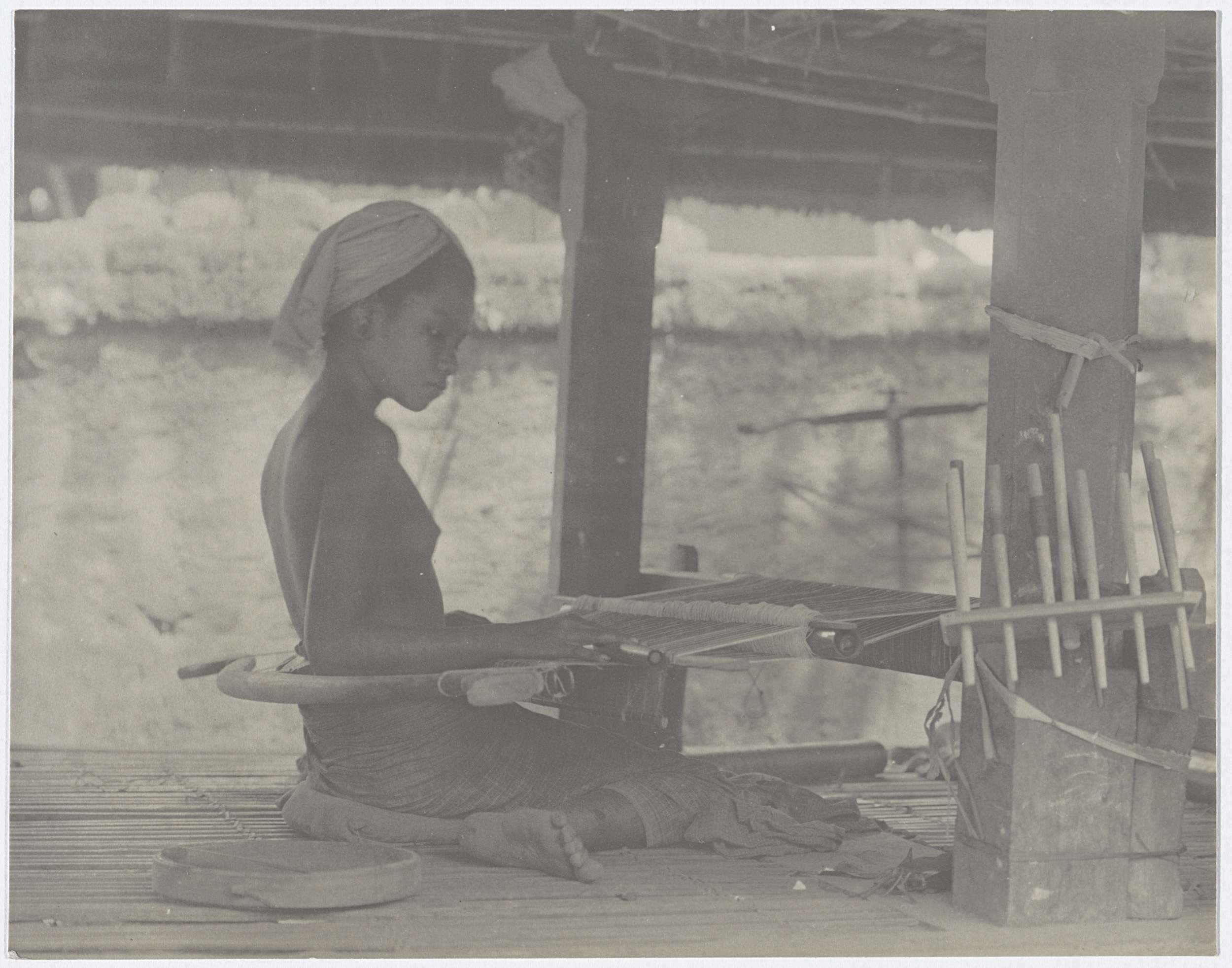 Interieur in Nederlands Indië met dansende vrouwen, ...