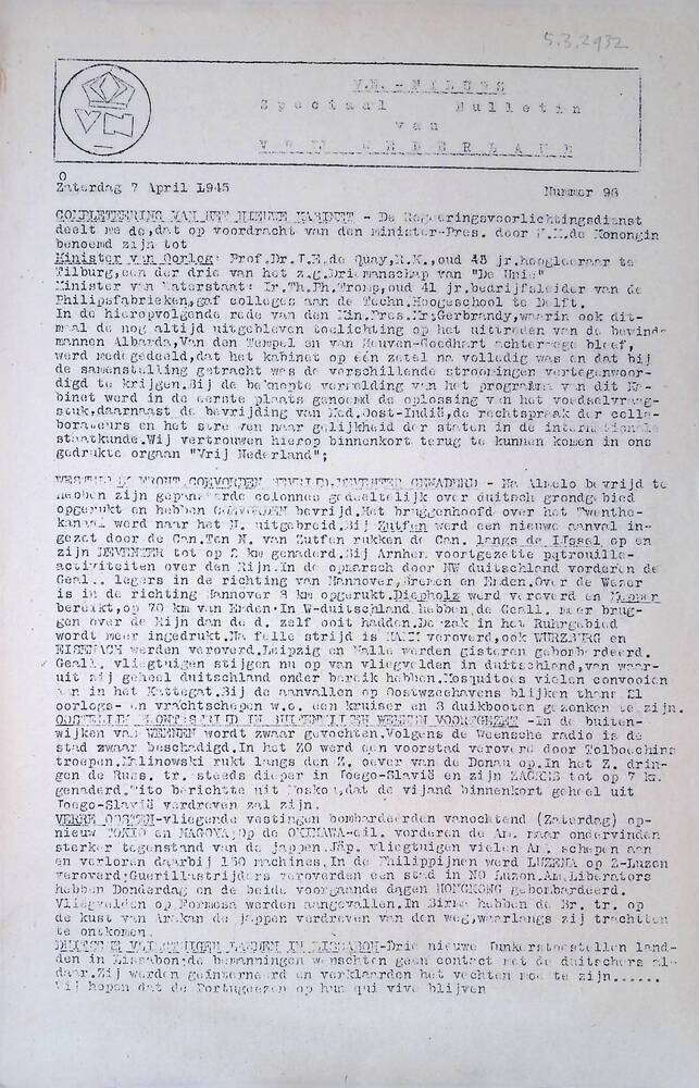 V N Nieuws, Speciaal bulletin, No. 98, 7 April 1945