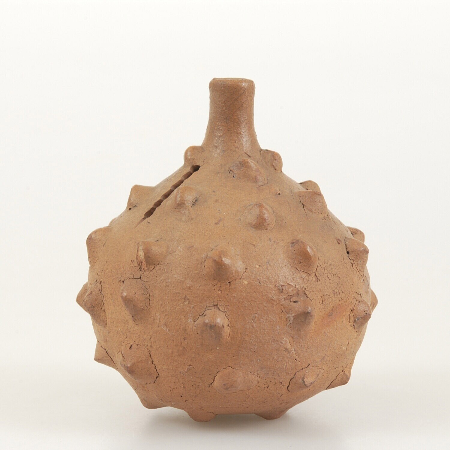 Spaarpot van aardewerk in de vorm van een durianvrucht