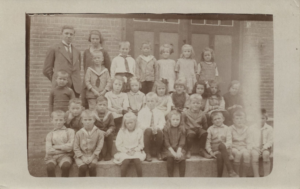 Schoolfoto: christelijke lagere school, groep 1. Ach...
