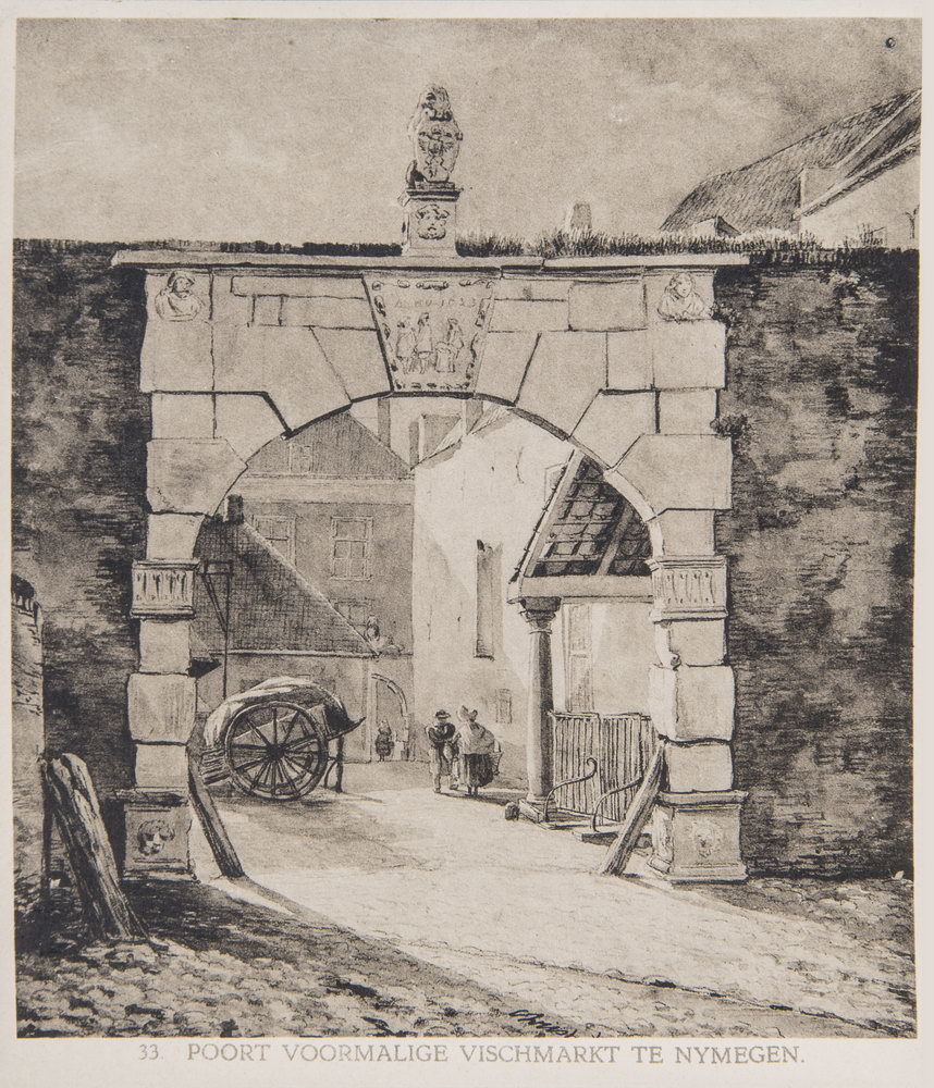 Reproductieprent, voorstellende de poort van de voor...