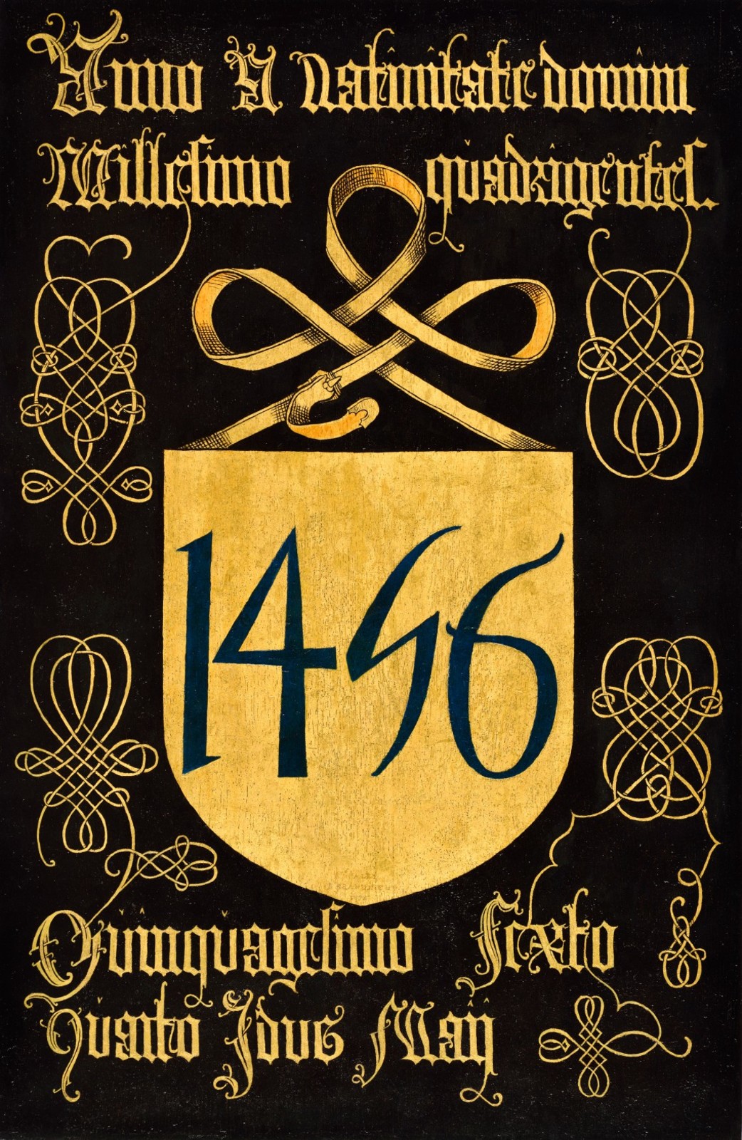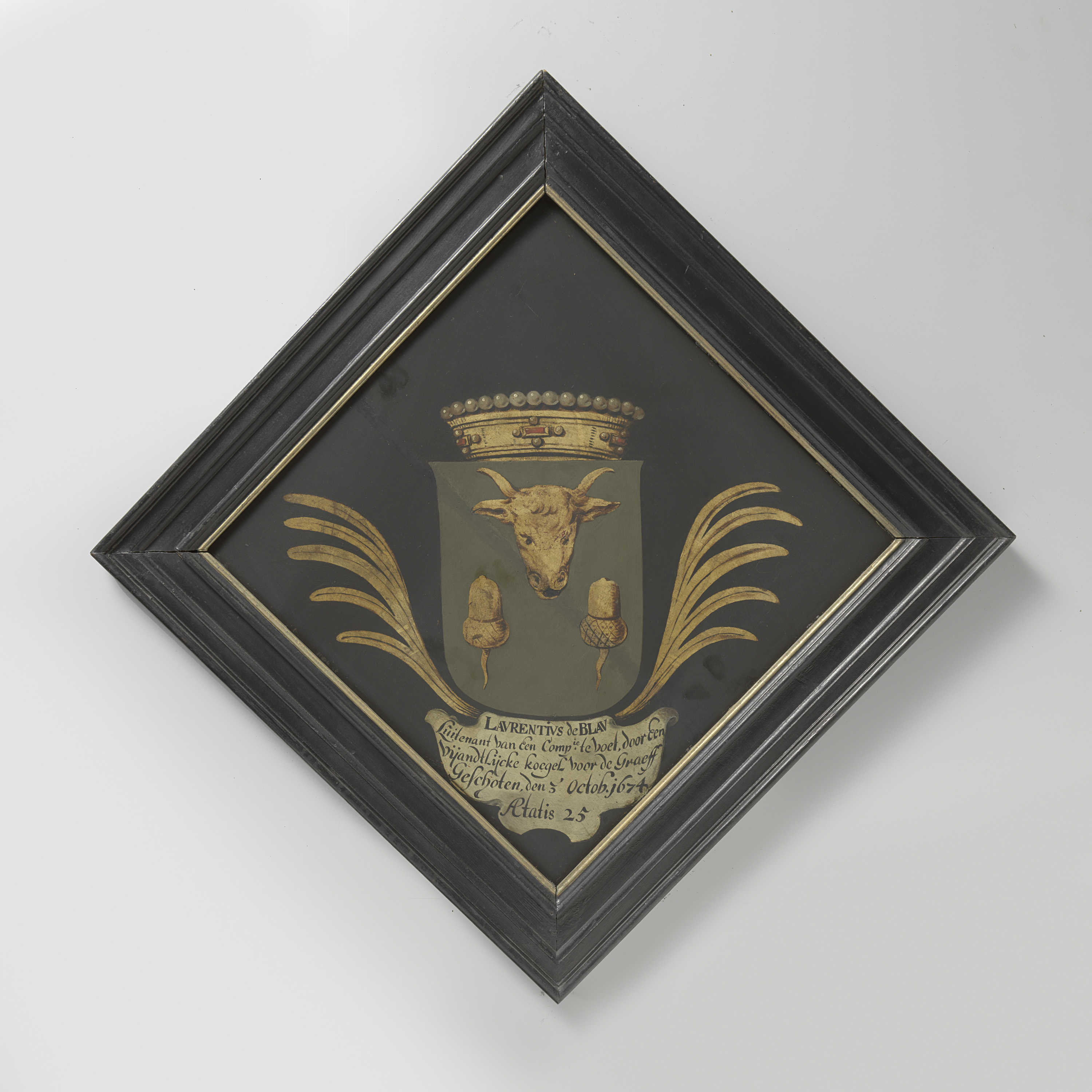 Gepolychromeerd verguld houten wapenbord uit 1656.