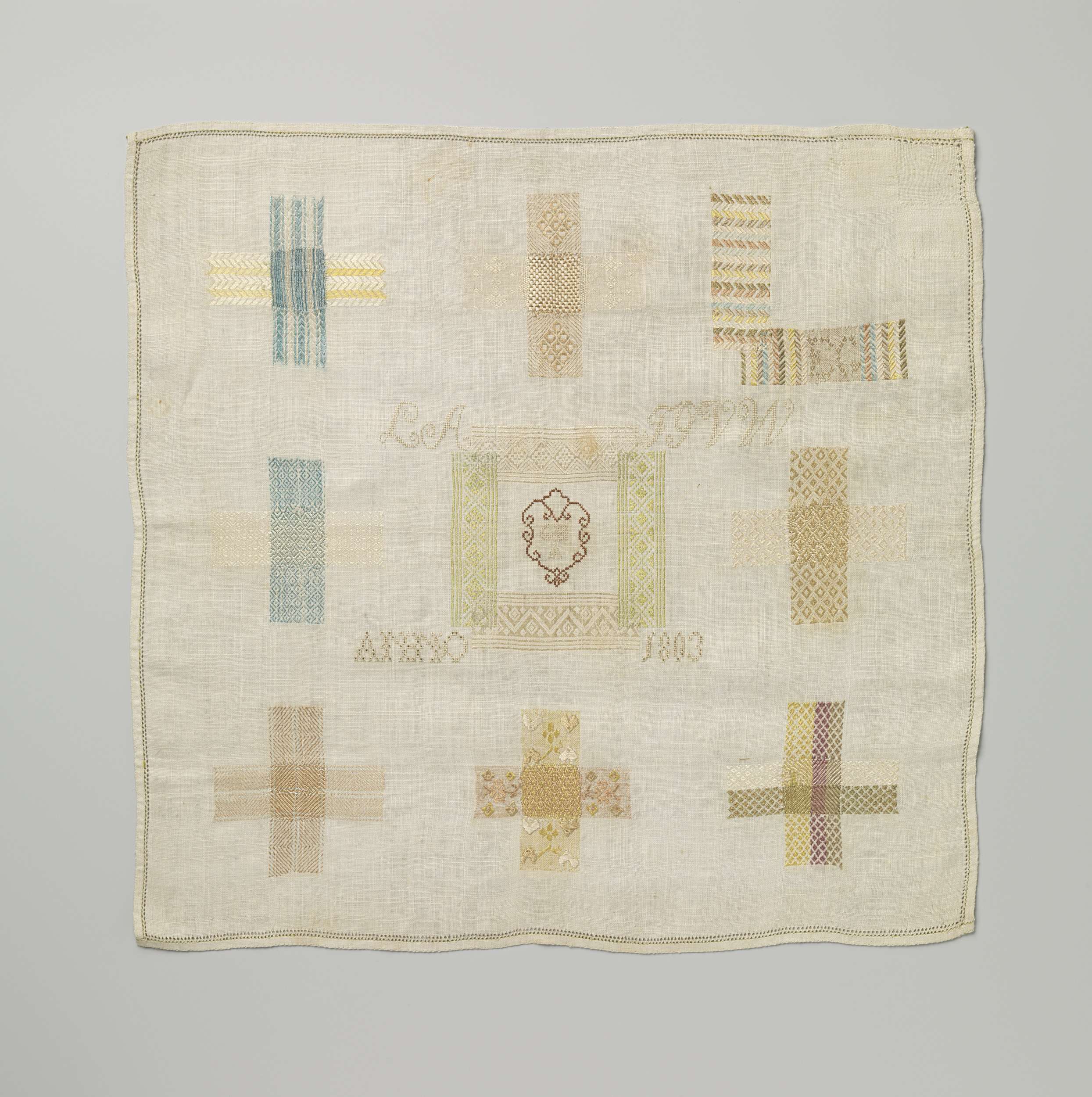 Stoplap van linnen waarin met veelkleurige zijde tie...