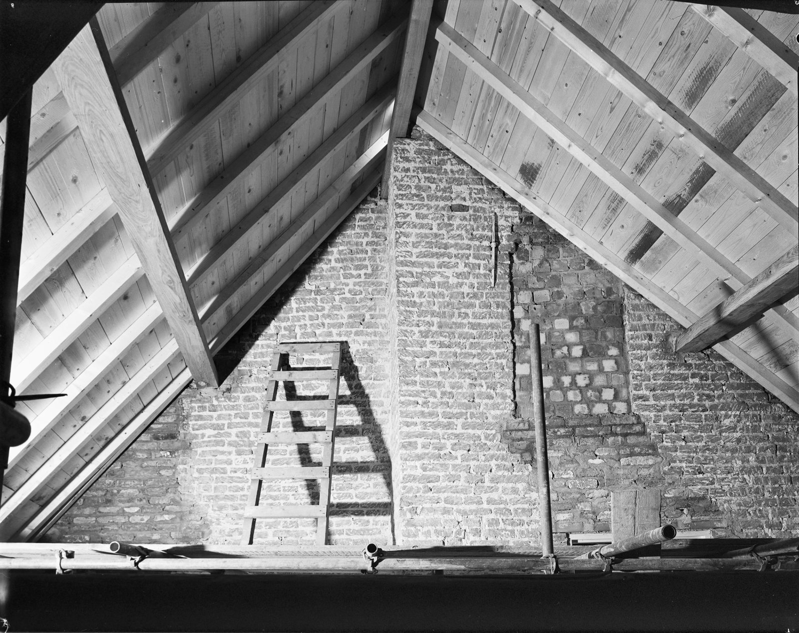 Detail voorgevel, geveltop, tijdens restauratie werk...