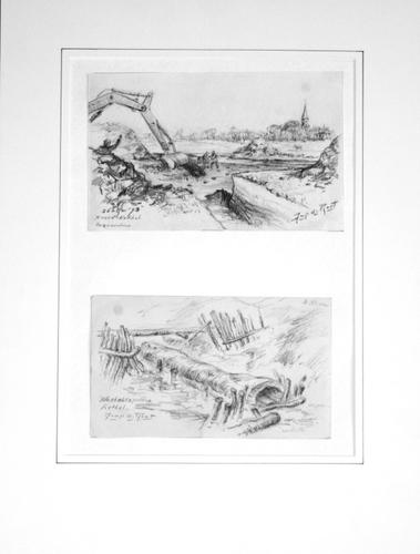 Potloodtekening. Hooischuit in de Vlietlanden, Vlaar...