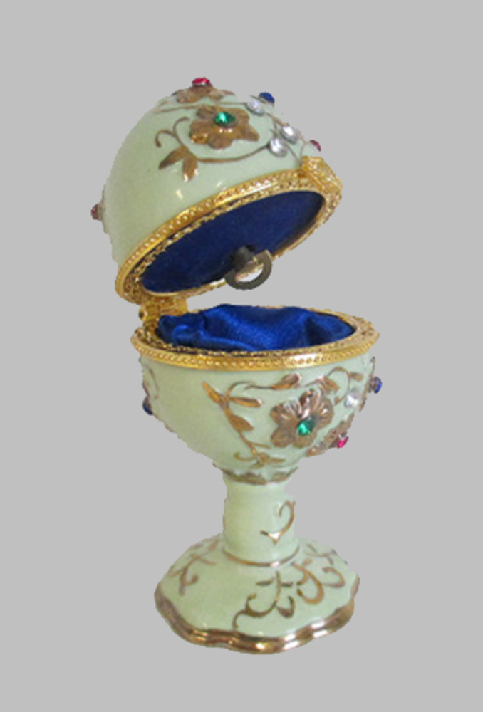 Ei met speelwerk van wit porselein versierd met nama...