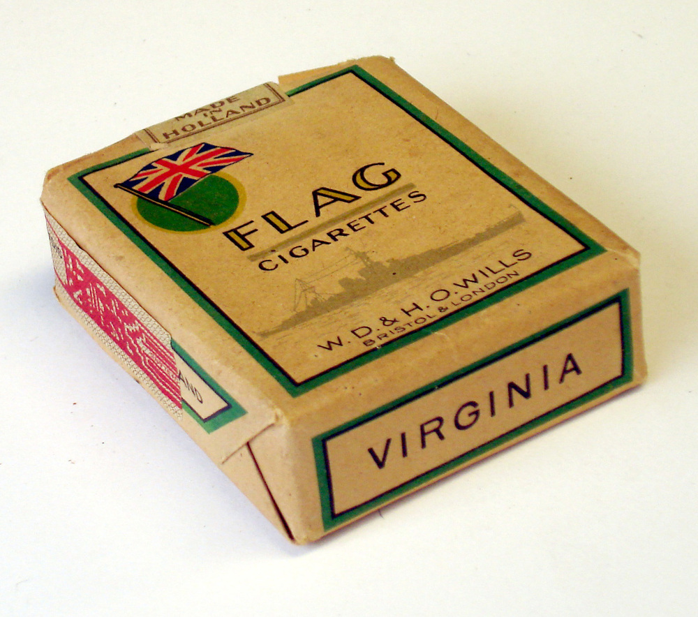 Pakje van papier met sigaretten van het merk Flag ca...
