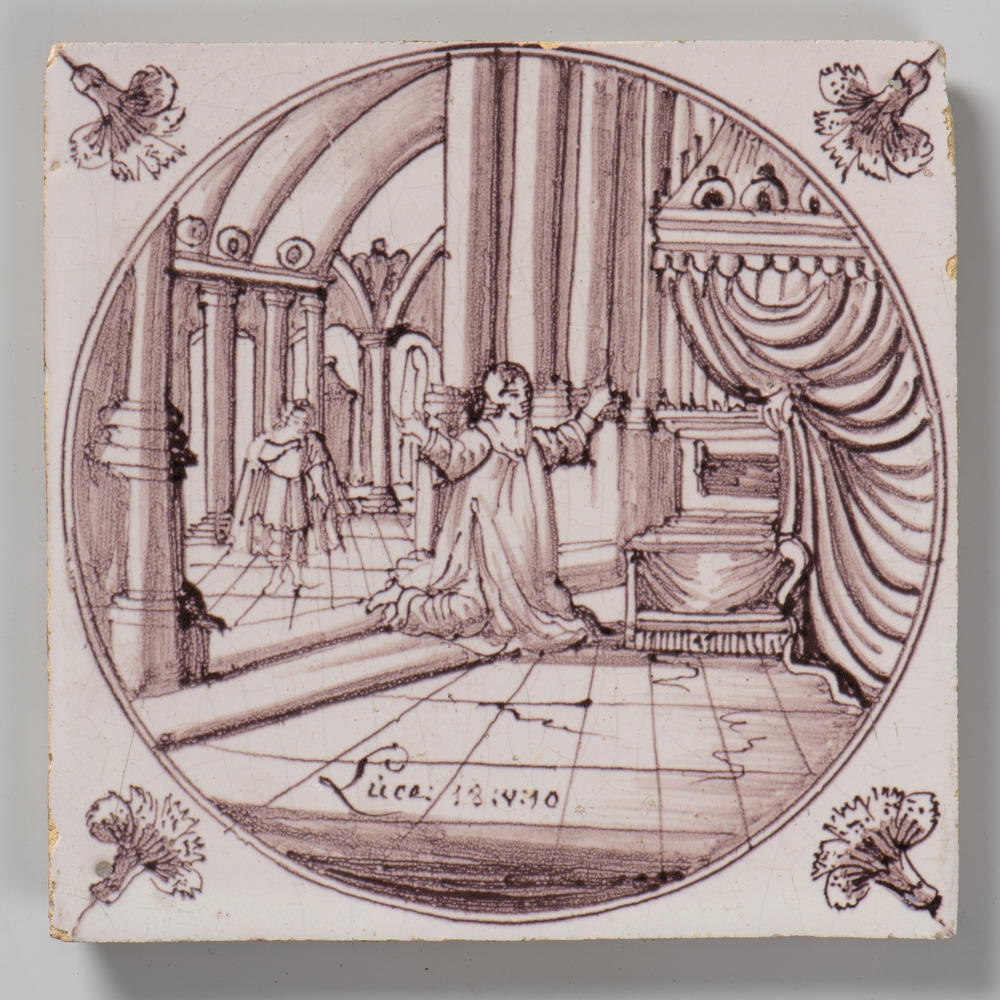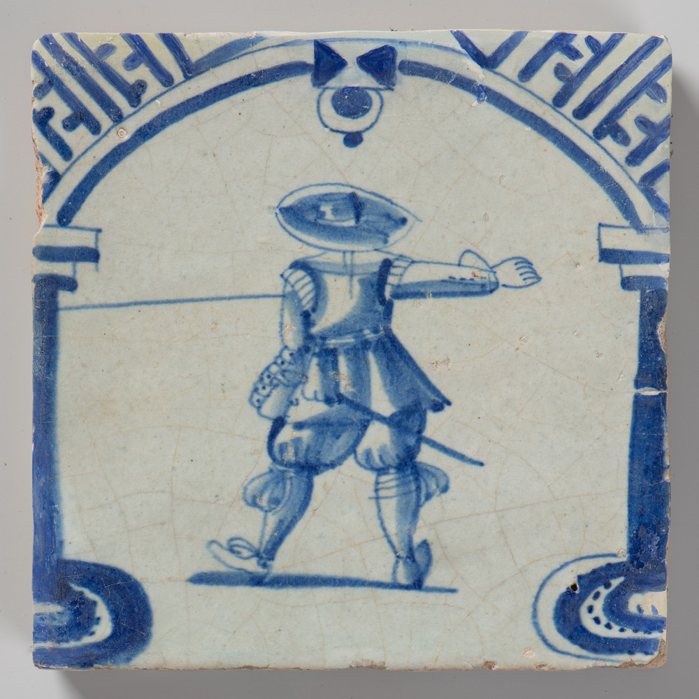 tegel van keramiek met tinglazuur, voorstellende: or...